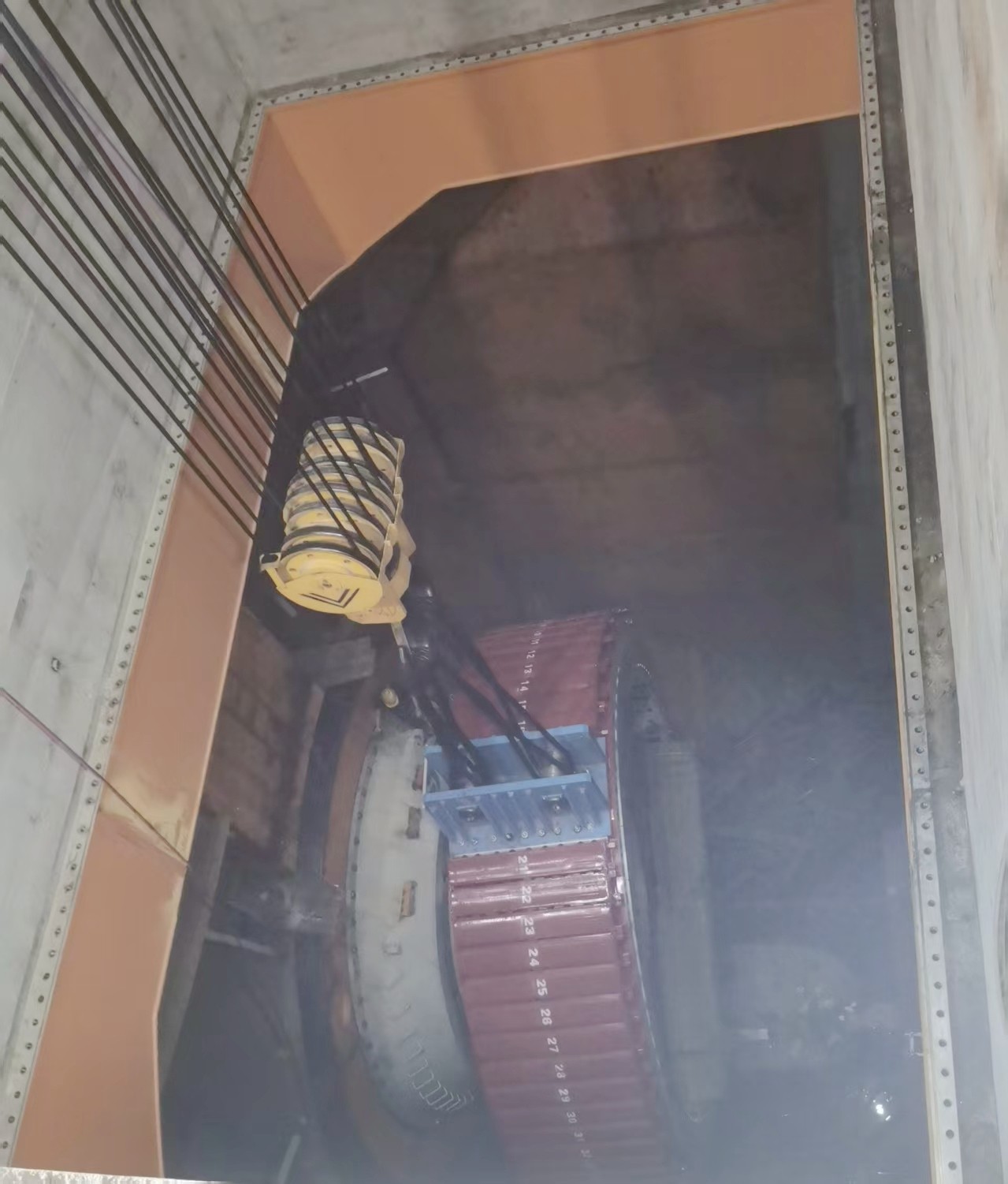 此次吊裝的6號機組轉子重量達230.5噸,直徑8.4米,是名副其實的“鋼鐵巨環”,其精準就位對施工技術與安全保障提出極高要求。為確保吊裝萬無一失,所屬攀水電公司與參建各方做足了準備,聯合開展多輪檢查,全面排查橋機、吊具等關鍵設備,同步組織技術交底和模擬演練,把安全措施落實到每個環節。吊裝過程中,這臺龐然大物在橋機手的精準操控下平穩起吊、緩緩移動,最終以毫米級精度穩穩落入機坑,與發電機大軸精準對接。全程監測數據顯示所有參數均符合設計標準,本次吊裝任務圓滿完成。
