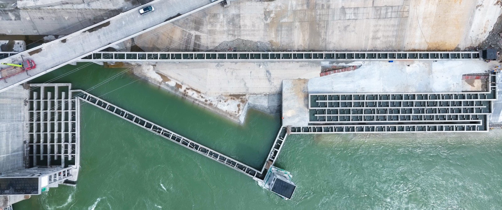 魚道全長約1003米,設有3個進口和1個出口,進口與出口之間最大落差為18米。施工設計方面,通過獨特的隔板、側室板等結構,減緩水流速度,形成一個個“緩流區”,如同為魚兒們設置的“休息驛站”,讓它們在洄游途中得以積蓄力量。為了吸引更多魚類進入魚道洄游,工作人員在3個進口處設置了補水系統,調整水流速度,誘導魚類上溯洄游。此外,魚道還配備了高科技監測設備,可實時掌握魚類的動向,及時調整魚道運行參數,確保魚兒順利通過。