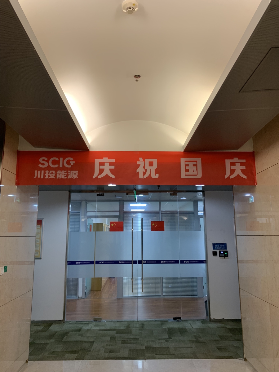 “你看,靚美燈籠和鮮紅國旗掛起來了”。為了營造喜慶祥和的國慶節氛圍,公司分別在川投大廈6、9層公共區域,由員工自主動手,安裝慶祝標識,懸掛燈籠、橫幅和張貼國旗,干部員工在主題濃烈的辦公環境中個個干勁十足。
