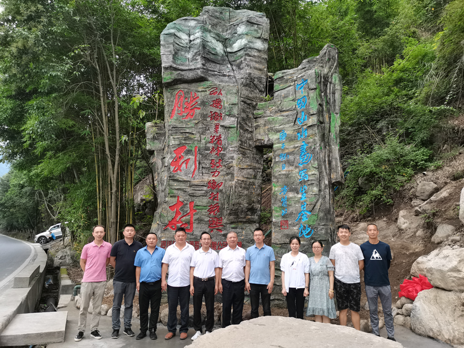 根據金口河區對大峽谷景區的統籌規劃,川投能源立足當地地理特點,用心打造旅游產業,在樂漢高速金口河出口(原新光村枕頭壩處)援建山門一座,作為大峽谷景區入口和旅游指引牌,吸引游客入村體驗鄉村旅游。9月9日,楊洪一行到達金口河區,不顧舟車勞頓,立即前往勝利村山門處,舉行“川投能源捐建”山門石碑揭牌儀式。