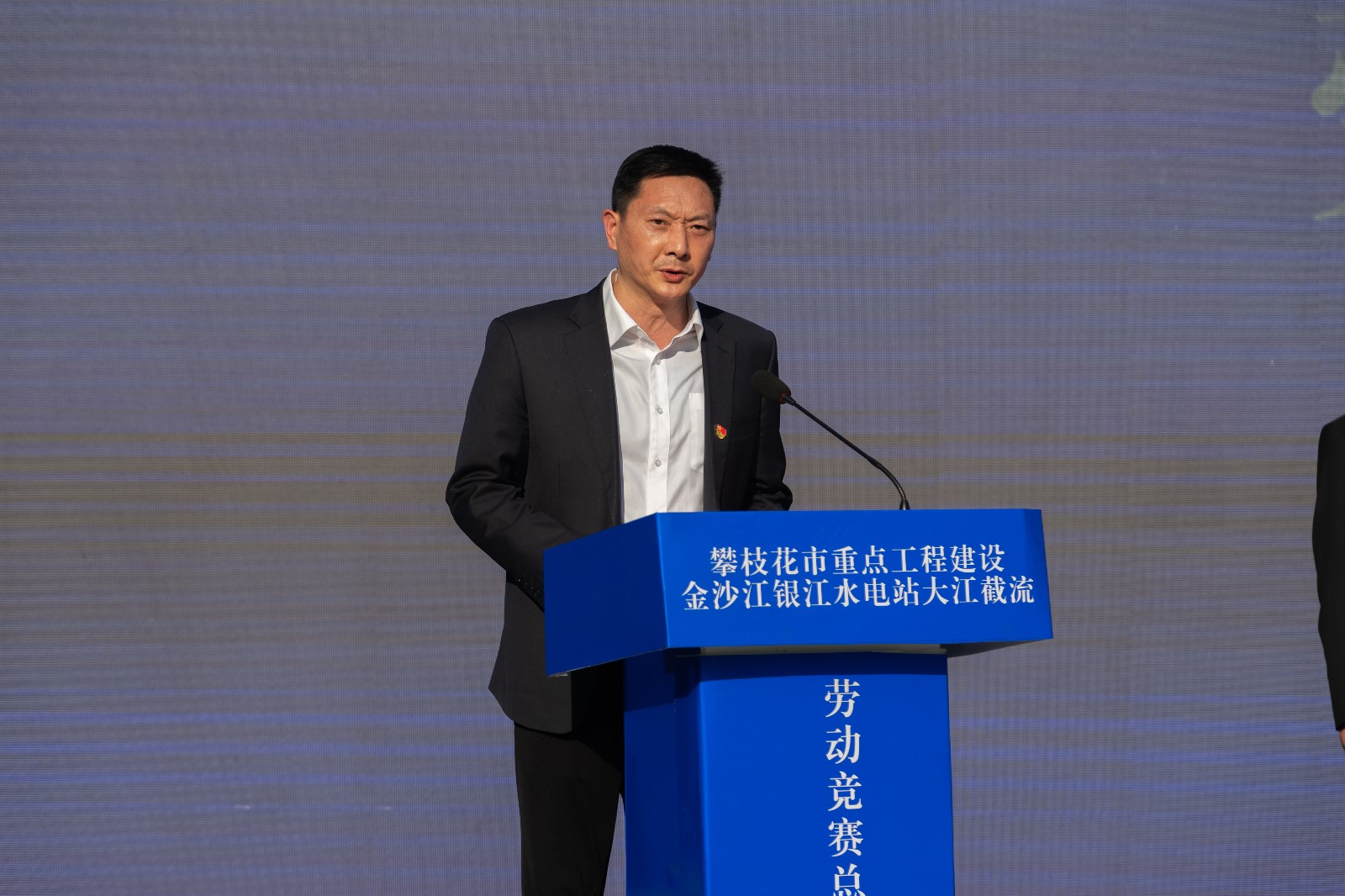 會議首先由川投能源副總經理、攀水電公司黨總支書記、董事長徐孝剛作大江截流勞動競賽總結報告,在攀枝花市重點工程建設勞動競賽的安排部署下,通過開展“勠力奮戰三百天、打贏截流攻堅戰”等勞動競賽活動,取得了提前一年實現大江截流良好成績。公司黨總支委員、總經理吳巍嶼宣讀了《攀枝花市總工會關于表揚金沙江銀江水電站大江截流勞動競賽優秀集體、優勝班組、先進個人的決定》,與會領導共同為受表彰的10個優秀集體、13個優勝班組、30名先進個人授牌頒獎并頒發證書,獲獎的先進集體和先進個人代表分別作了發言。