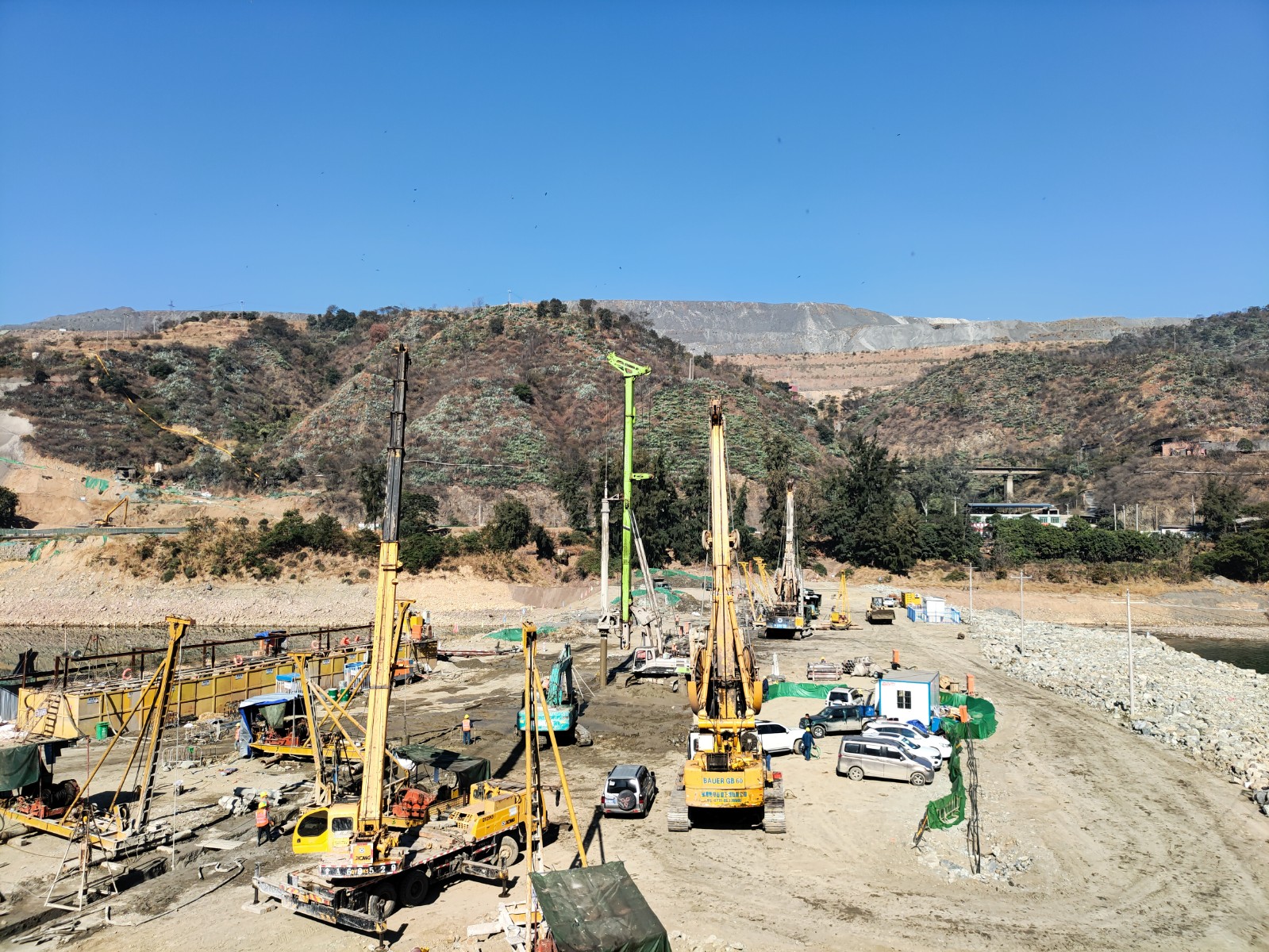 目前,二期土石圍堰防滲墻施工平臺以上加高培厚、土工膜安裝及二期基坑抽水等轉序工作已馬不停蹄展開,參建單位正鉚足干勁,全力向汛前完成二期土石圍堰施工沖刺,確保在今年底能開始第一倉混凝土澆筑,為2025年首臺機組投產發電目標奠定堅實基礎。