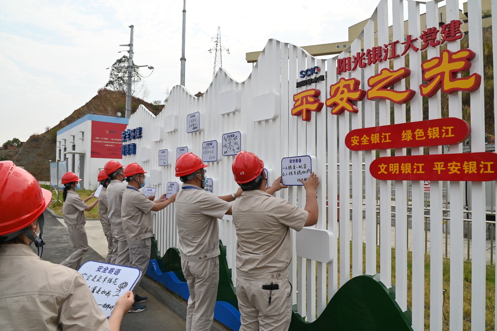 在“平安之光”安全寄語墻前,川投能源副總經理、公司黨總支書記、董事長徐孝剛帶頭親手寫下了“安全寄語”,一條條寄語承載著大家對銀江水電站平安建設的莊重承諾和公司健康發展的美好祝愿。在“學習之光”學習園地,大家再次學習了安全十大禁令,號召全體黨員以身作則,帶頭踐行,實現從要我安全向我要安全的轉變。