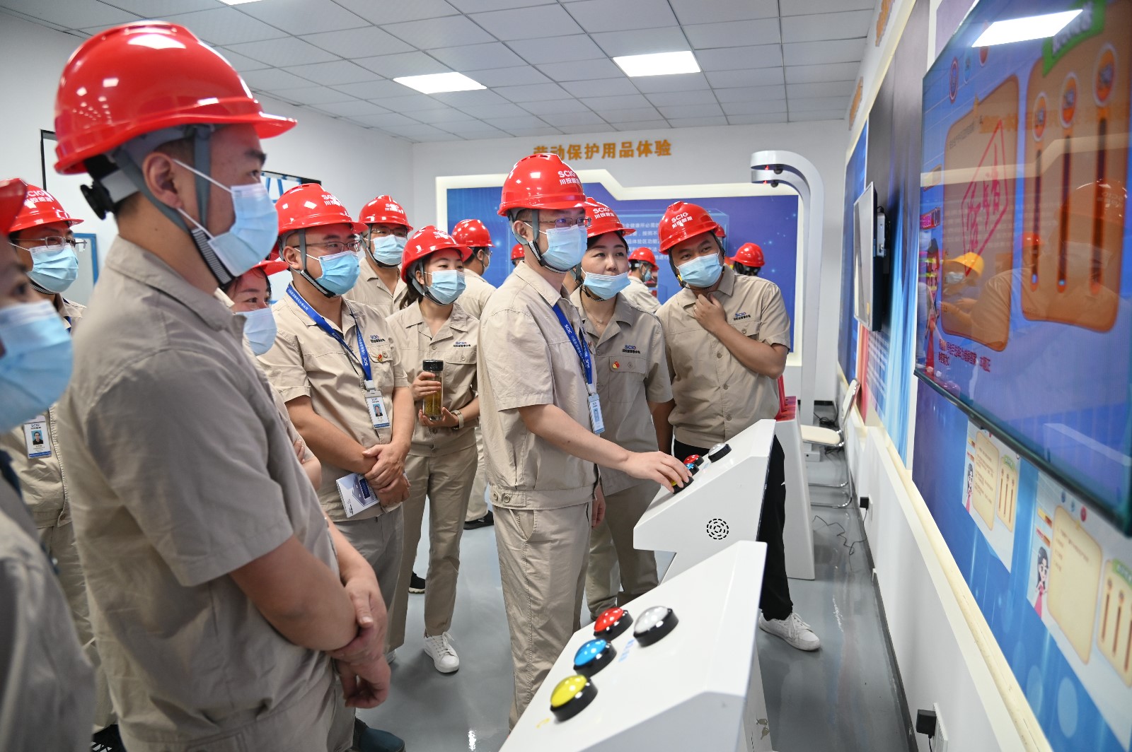 隨后,全體人員在公司安全體驗館進行了沉浸教學,該體驗館面積約700平方米,設有安全帶、有限空間、機械傷害、平衡木、護欄推倒、安全帽撞擊、高處墜落、觸電、滅火器使用、醫療急救、安全事故VR體驗等體驗項目,包含勞動防護用品穿戴及使用、安全標識及工程機械認知、風險辨識、安全知識和應急處置等教育培訓內容。本次安全體驗教育培訓通過展板展示、實景模擬、案例警示、知識答題、親身體驗等方式,將施工現場常見的危險源、危險行為與事故類型具體化、實物化,充分展示工程建設需要學習掌握的安全知識和技能。