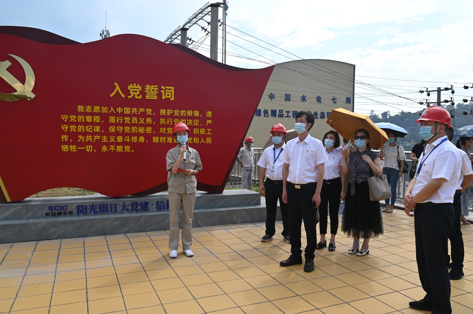 田巨龍一行首先參觀了銀江水電站施工現場和大黨建宣傳陣地。在施工現場,吳巍嶼介紹了銀江水電站的基本情況,田巨龍一行對銀江水電站成功實現提前一年大江截流表示充分欽佩,并表示十分期盼銀江水電站蓄水后高峽平湖、水城相融的壯觀景象。在大黨建宣傳陣地,講解員王思琪向來賓介紹了川投能源黨委“五個先鋒”黨建品牌總體要求和攀水電公司“七色陽光大黨建”的實施情況。田巨龍一行表示,公司“七色陽光大黨建”品牌特色鮮明,很好地結合攀枝花市區域特色和銀江水電站工程建設任務,希望醫院黨委能進一步加強與攀水電黨總支的交流學習。