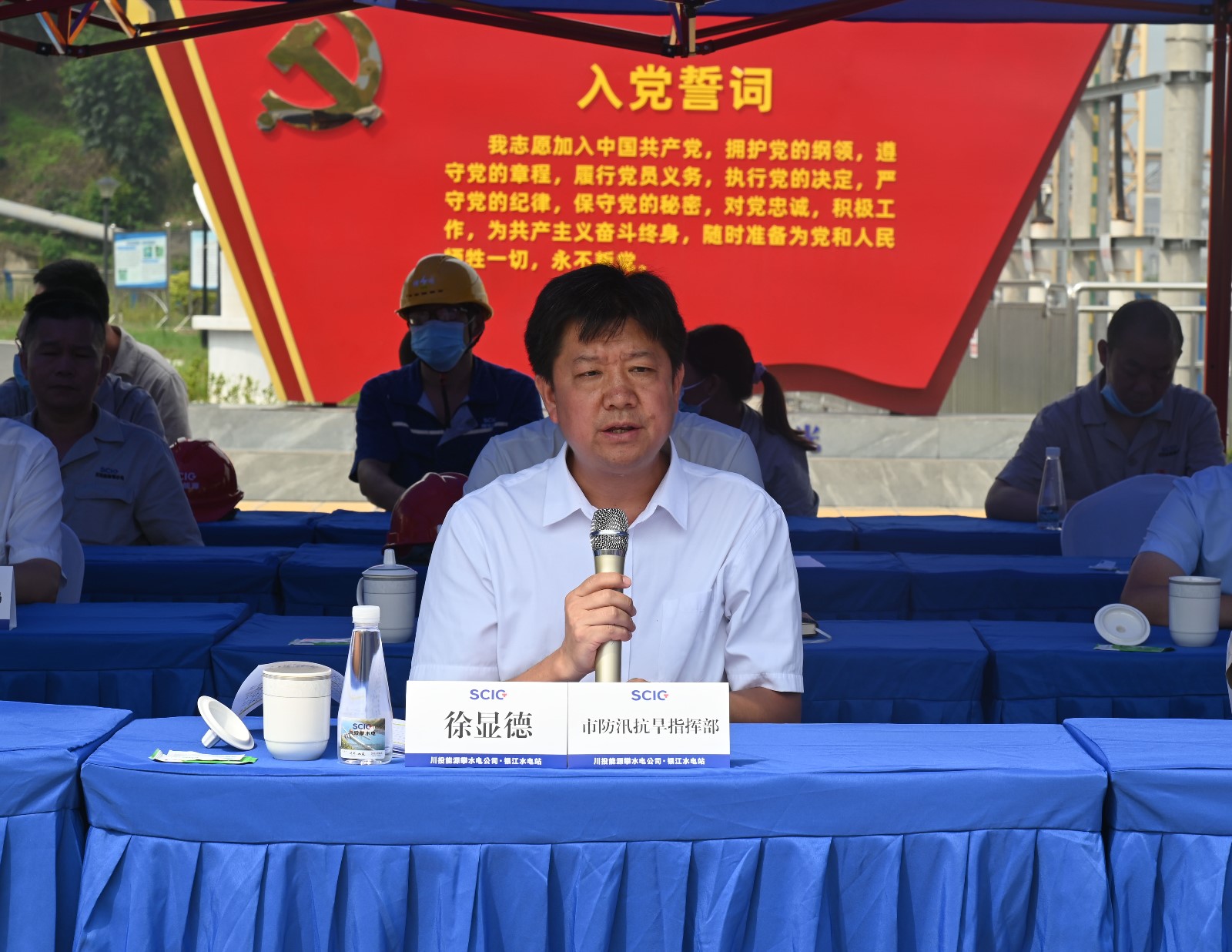 徐顯德指出,銀江水電站2022年防汛搶險應急演練是虞平市長親自出題、龍勇副市長專門督辦的一次演練,今年是銀江電站大江截流以來的第一個汛期,各單位務必牢固樹立“人民至上、生命至上”理念,認真貫徹落實“兩個堅持、三個轉變”防災減災救災新理念,把防汛減災各項工作抓實、抓細、抓具體。徐顯德要求,一是要進一步提高政治站位,牢固樹立“防范勝于搶險”理念,切實增強憂患意識、安全意識、責任意識和防范意識。二是要進一步強化統籌調度,切實抓好預測預警、科學調度、隱患排查等關鍵環節,加強組織領導、強化責任擔當,全面履行防汛減災職責,不斷提升電站防汛救災能力。三是要進一步強化應急準備,做好物資儲備、工程調度、安全巡查、隊伍建設等各項工作,嚴格落實“三查、三避讓”和“三個緊急撤離”剛性要求,確保安全。