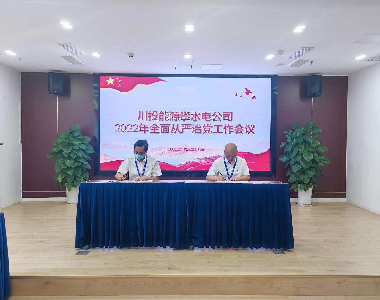 會議首先由黨總支委員、董事會秘書、工會主席鄧勇傳達學習了川投能源黨委書記、副董事長、總經理楊洪在川投能源2022年加強黨的領導、全面從嚴治黨工作會上的講話,楊銳匯報了2022年上半年紀檢工作總結及下半年工作打算,公司黨總支委員/領導班子成員匯報了半年來“一崗雙責”履責情況,川投能源副總經理、攀水電公司黨總支書記、董事長徐孝剛與領導班子成員代表財務總監王俊森現場簽訂了《黨風廉政建設責任書》。