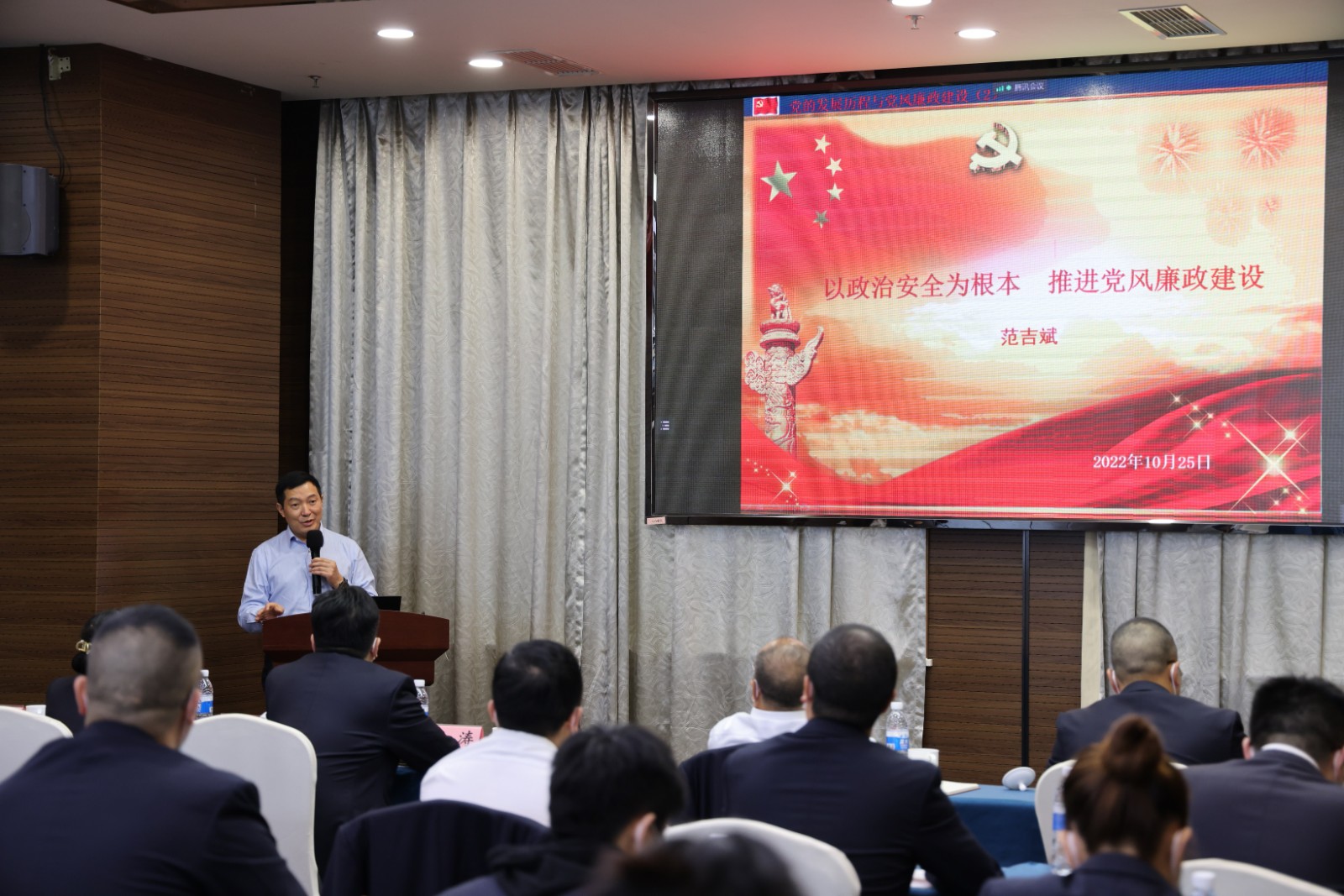 隨后,特邀四川省總工會干校、成都市總工會干校、成都非公企業學院、省直機關黨校研究生部客座教授范吉斌為大家講授《以政治安全為根本 推進黨風廉政建設》為主題的廉潔教育黨課。范教授從“總體國家安全觀與政治安全,政治安全必須加強黨風廉政建設,提高政治站位和政治修養”三個方面,對加強作風建設引述經典論據,論述重要意義;對存在的主要問題進行客觀公正評價,深刻剖析原因;對如何律己正身、干凈擔當制定方法路徑,提出目標要求;明確了作為新時代的一名國企黨員干部暨關鍵崗位人員是什么、應該做什么、不能干什么。范教授以其深厚的理論知識、豐富的實踐經驗、鮮活的典型事例、切實的心得體會賦予了整堂黨課引人入勝、發人深省的魅力。