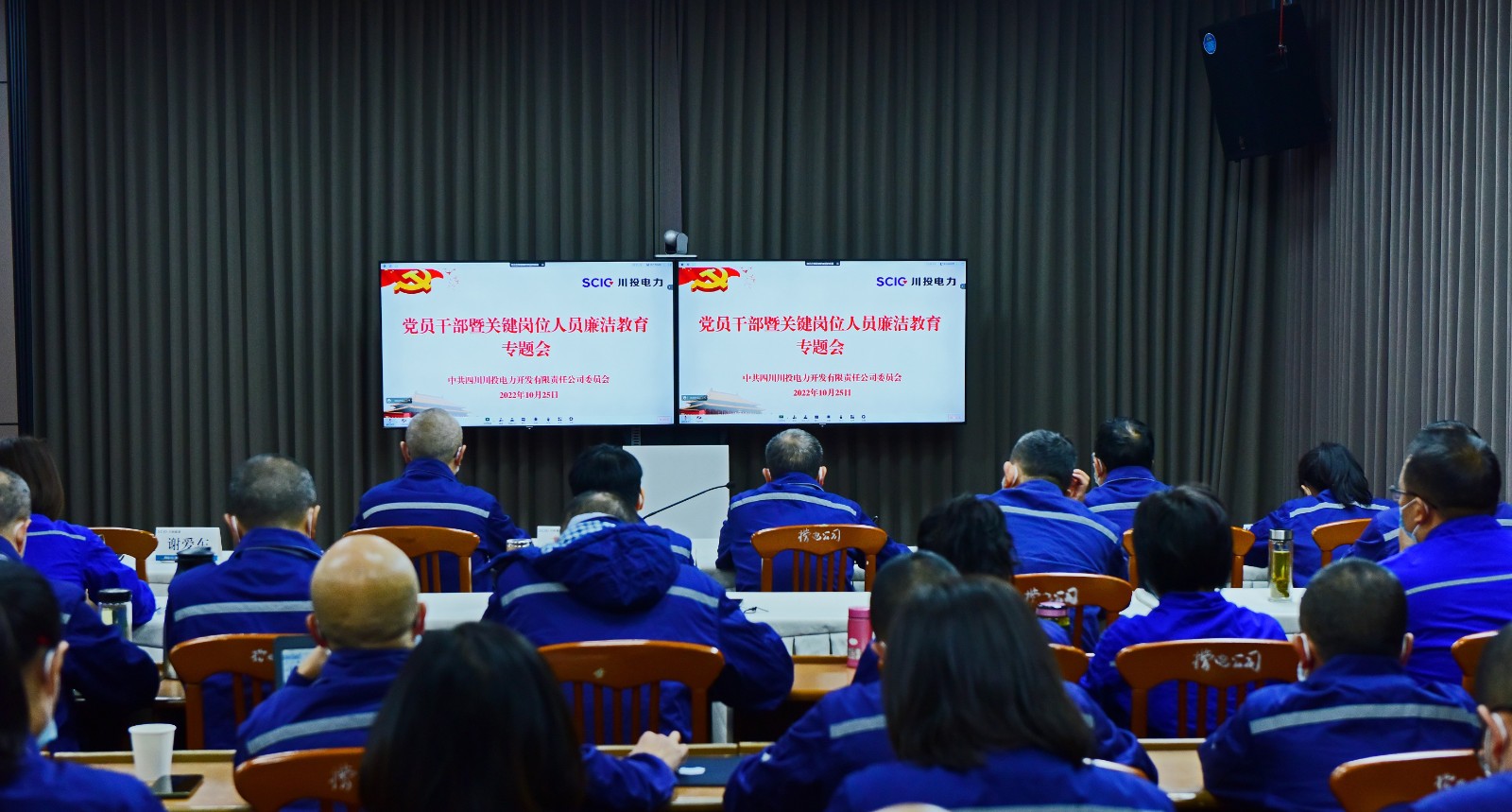 為深入學習中國共產黨第二十次全國代表大會精神,貫徹落實習近平總書記關于堅定不移全面從嚴治黨,深入推進新時代黨的建設新的偉大工程,充分發揮黨風廉政建設和反腐敗工作在企業改革發展中的引領保障作用,按照川投電力黨委廉潔教育部署安排,10月25日下午,召開黨員干部暨關鍵崗位人員廉潔教育專題會。會議由黨委委員、紀委書記謝麗主持。