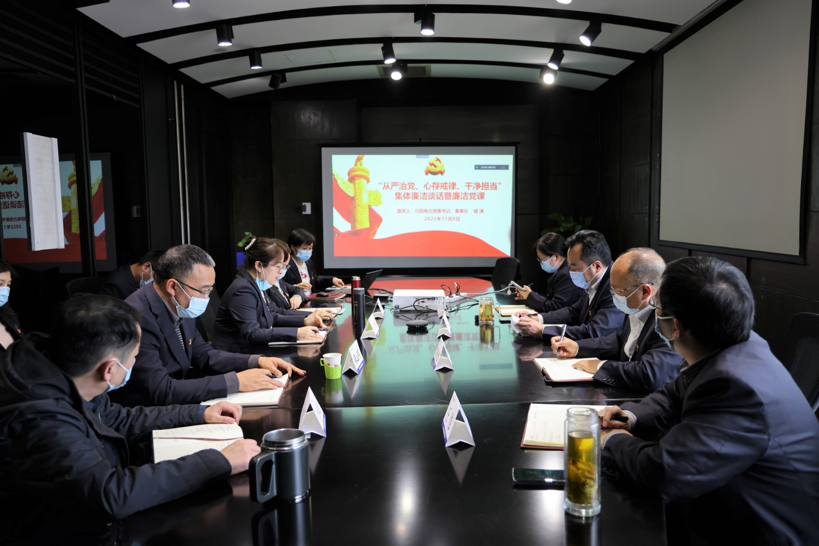 為深入學習貫徹黨的二十大關于推進黨的自我革命、全面從嚴治黨的戰略部署和重點任務,進一步加強黨員干部暨關鍵崗位人員忠誠履行正風肅紀反腐職責使命,推進黨風廉潔建設和反腐敗工作精神入腦入心。11月8日下午,公司黨委書記、董事長楊濤以《從嚴治黨 心存戒律 干凈擔當》為題開展集體廉潔談話暨講授廉潔黨課。會議采用視頻+現場方式召開,班子成員、各部門負責人和機關黨支部全體黨員暨關鍵崗位人員、各電廠廠長、副廠長共計40余人參加。