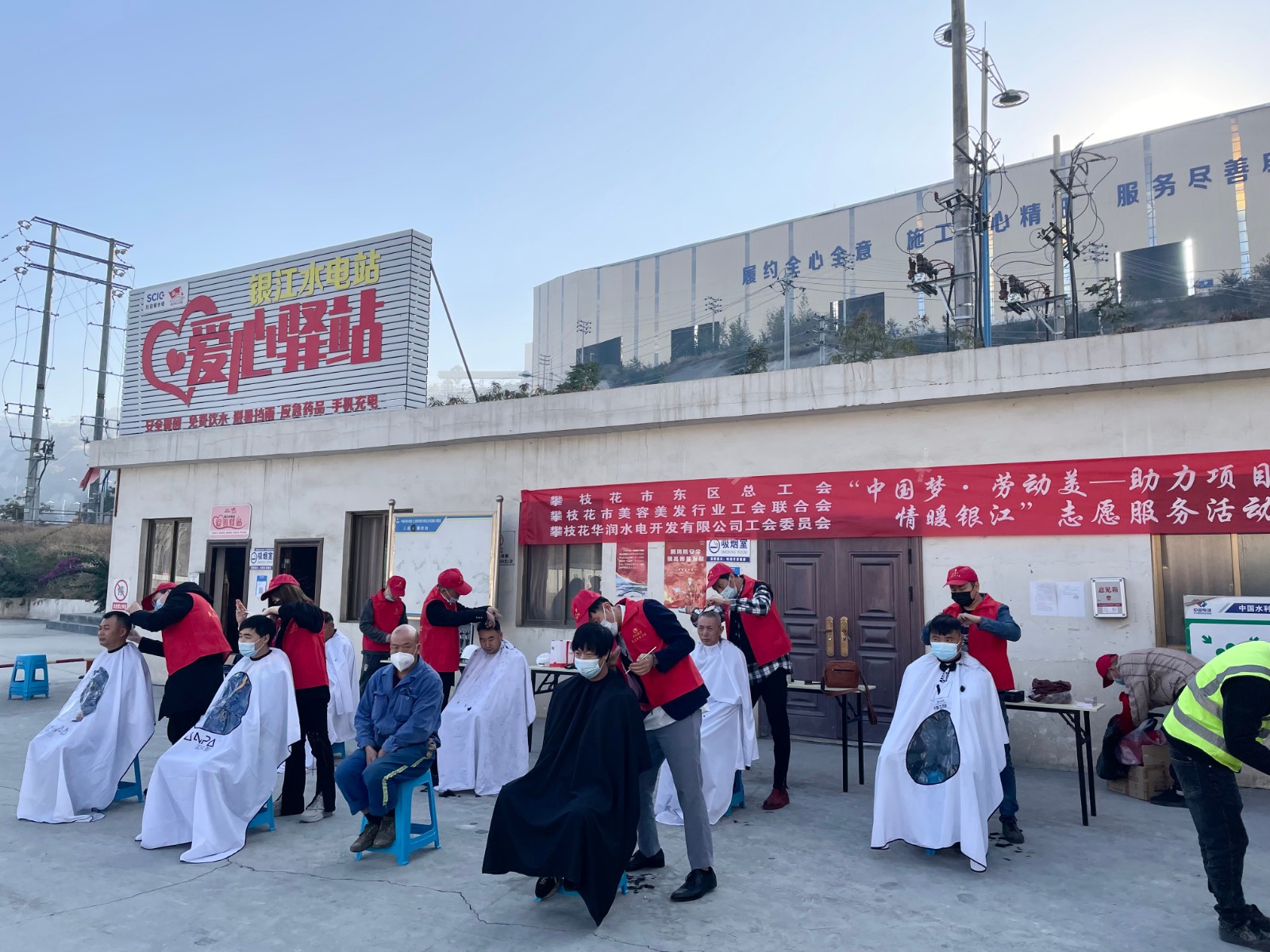 為落實四川省總工會關于《學習宣傳貫徹黨的二十大精神》文件要求,各級工會要把黨的二十大精神貫徹落實到工會工作的各方面。11月28日上午,由攀枝花市東區總工會主辦、攀水電公司工會承辦、攀枝花市美容美發行業工會聯合會協辦的“中國夢·勞動美—助力項目攻堅 情暖銀江”志愿服務活動在銀江水電站愛心驛站開展。本次活動是由攀枝花市美容美發行業工會聯合會的理發師為一線工友開展的“愛心義剪”。按疫情防控要求,公司工會提前對長江設計公司、貴陽院監理部、二灘建設監理部、華東院監理部、水電五局項目部、水電七局項目部、水電十局項目部、四川路橋項目部、試驗監測中心等參建單位進行宣傳并報名登記,分批組織人員理發,避免了人員聚集,確保了活動有序開展。