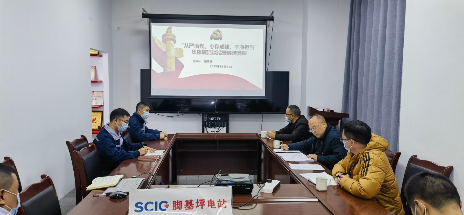 為深入宣傳貫徹黨的二十大精神,突出把好政治廉潔關,筑牢廉潔防線,堅定不移把黨的二十大作出的重大決策部署落地落實,12月6日,川投電力黨委副書記、總經理蔡承德為腳基坪電廠全體黨員、入黨積極分子講授廉潔黨課,并進行集體廉潔談話。