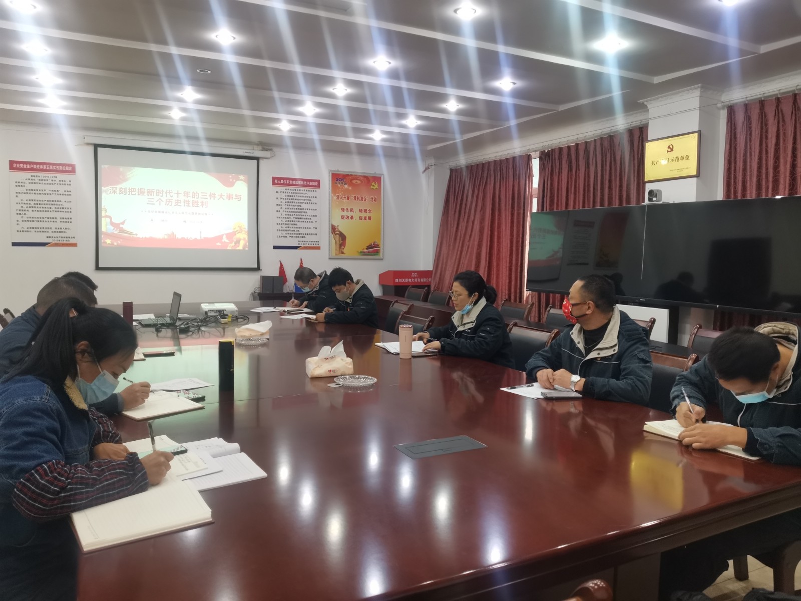 學習會上,公司黨總支委員、紀檢組長、工會主席汪曉力對黨的二十大精神宣講從“深刻把握新時代十年的三件大事與三個歷史性勝利”角度切入,通過對新時代十年中具有深遠歷史意義的三件大事“迎來中國共產黨成立一百周年”“中國特色社會主義進入新時代”“完成脫貧攻堅、全面建成小康社會的歷史任務,實現第一個百年奮斗目標”進行闡釋解讀,指出“這是中國共產黨和中國人民團結奮斗贏得的歷史性勝利,是彪炳中華民族發展史冊的歷史性勝利,也是對世界具有深遠影響的歷史性勝利”,深刻把握新時代“三件大事”“三個歷史性勝利”對我們深化對新時代十年偉大變革的重要認識、走好全面建設社會主義現代化國家新征程具有極為重大的意義。汪曉力要求,要進一步弘揚理論聯系實際的優良學風,把黨的創新理論學習好、宣傳好、貫徹好,用黨的最新理論武裝頭腦、指導實踐、有力推動公司高質量發展。