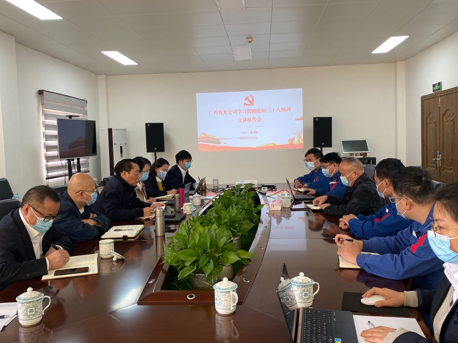 為進一步推動黨的二十大精神走深走實,12月14日上午,川投能源副總經理,攀水電黨總支書記、董事長,攀新能源董事長,廣西農光董事長徐孝剛一行赴廣西農光公司作黨的二十大精神專題宣講。攀水電黨總支學習貫徹黨的二十大精神宣講組成員、廣西農光公司全體黨員、干部職工共20人參加宣講會,會議由攀新能源公司副總經理楊嵐主持。