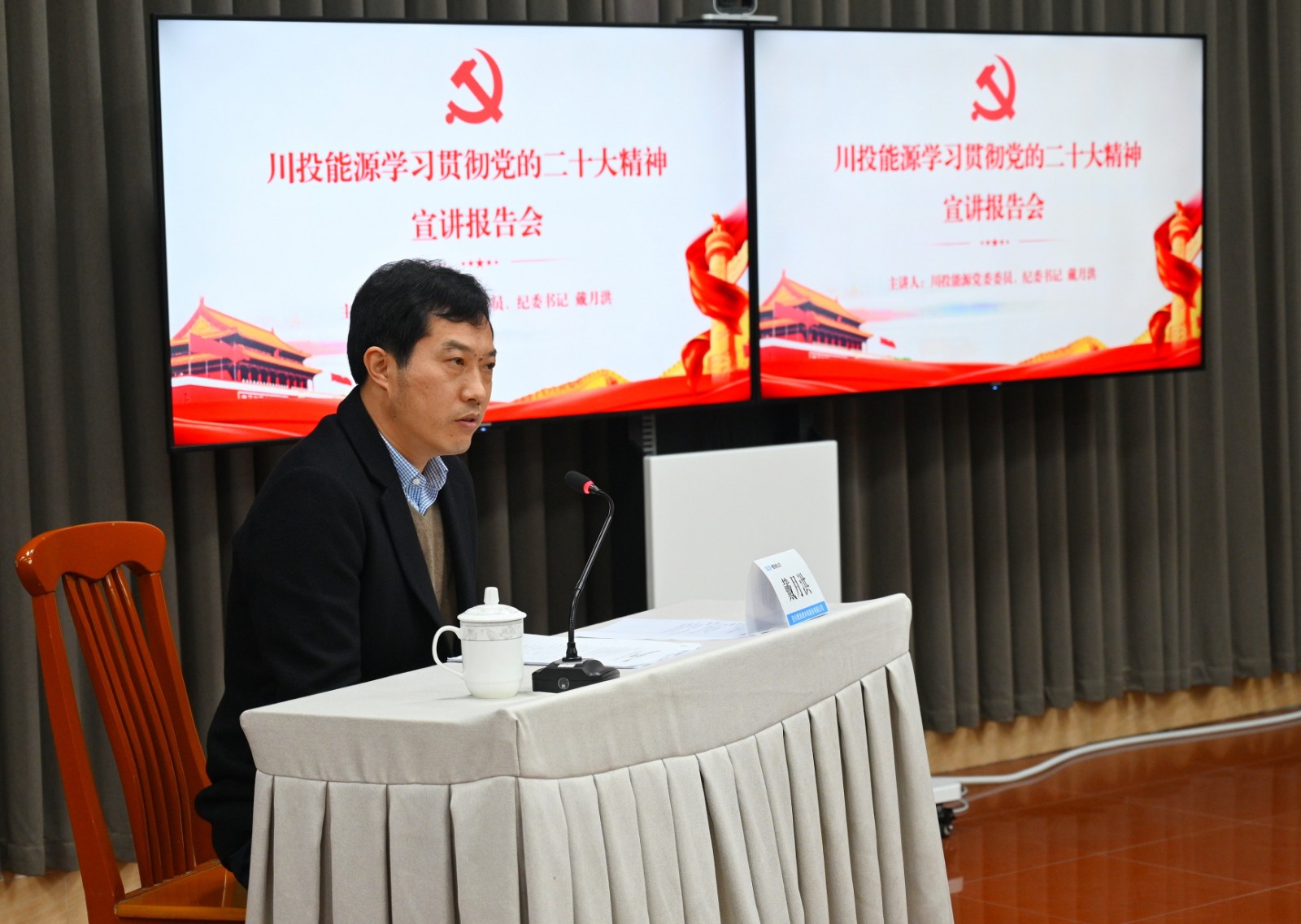 戴月洪指出,黨的二十大指明了以中國式現代化推進中華民族偉大復興的前進方向。公司黨員干部要按照黨的二十大報告對國資國企作出的重大部署,結合省委、省國資委黨委、集團公司黨委和川投能源黨委的部署要求,堅持政治第一標準,扛起黨建第一責任,聚焦發展第一要務,守牢安全第一底線。一是切實抓好學習培訓,廣泛生動開展宣講,扎實做好宣傳報道,感悟汲取思想偉力,持續掀起學習黨的二十大精神熱潮。二是深刻把握實踐要求,筑牢政治忠誠,堅決做到“兩個維護”,狠抓任務落實,保持戰略定力,堅持底線思維,著力防范化解風險挑戰,更加精準有效推動企業高質量發展。