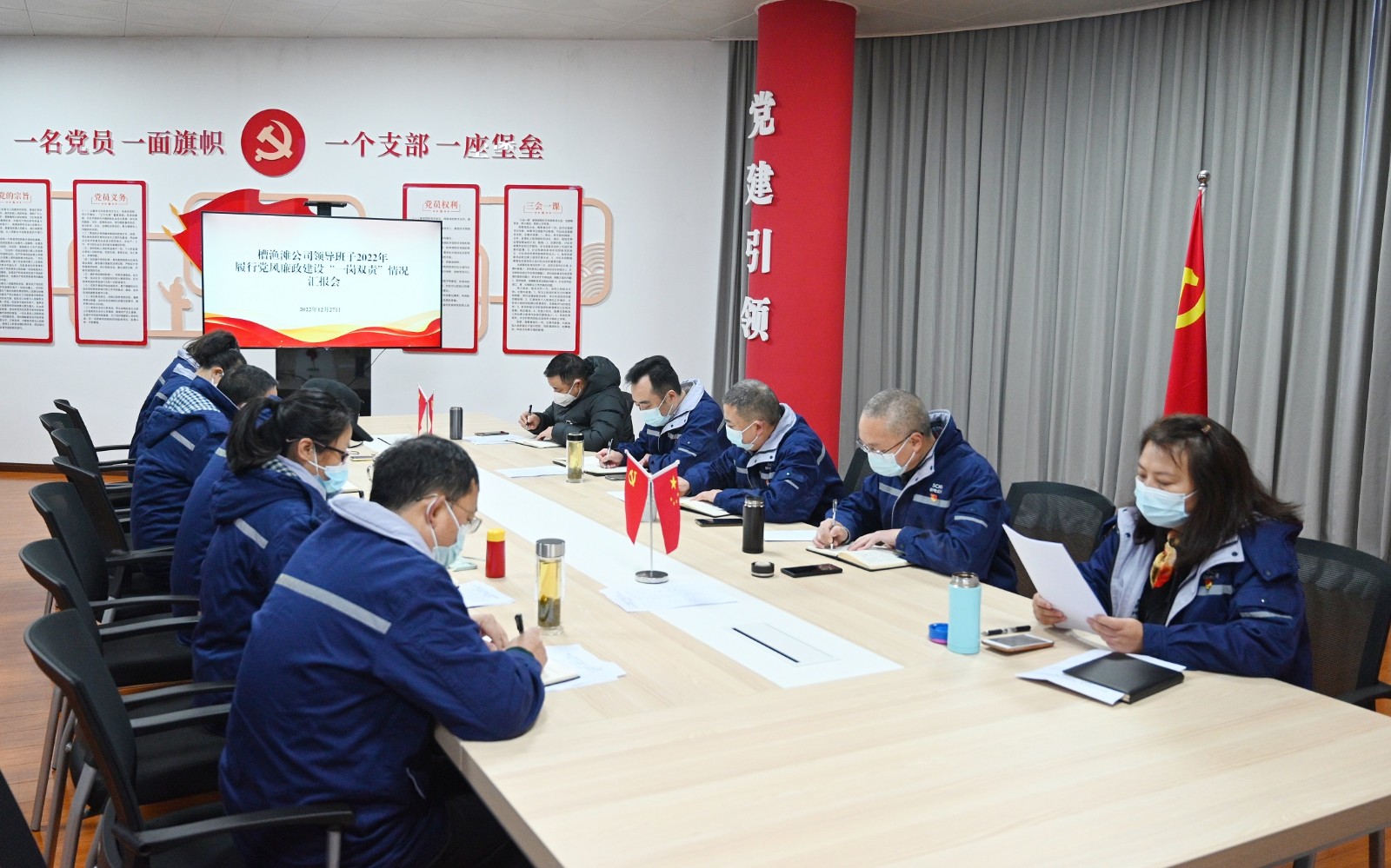12月27日槽漁灘公司組織召開2022年度領導班子履行黨風廉政建設“一崗雙責”情況匯報會。槽漁灘黨委委員、紀委書記謝愛東主持會議。公司領導班子成員參加會議。
