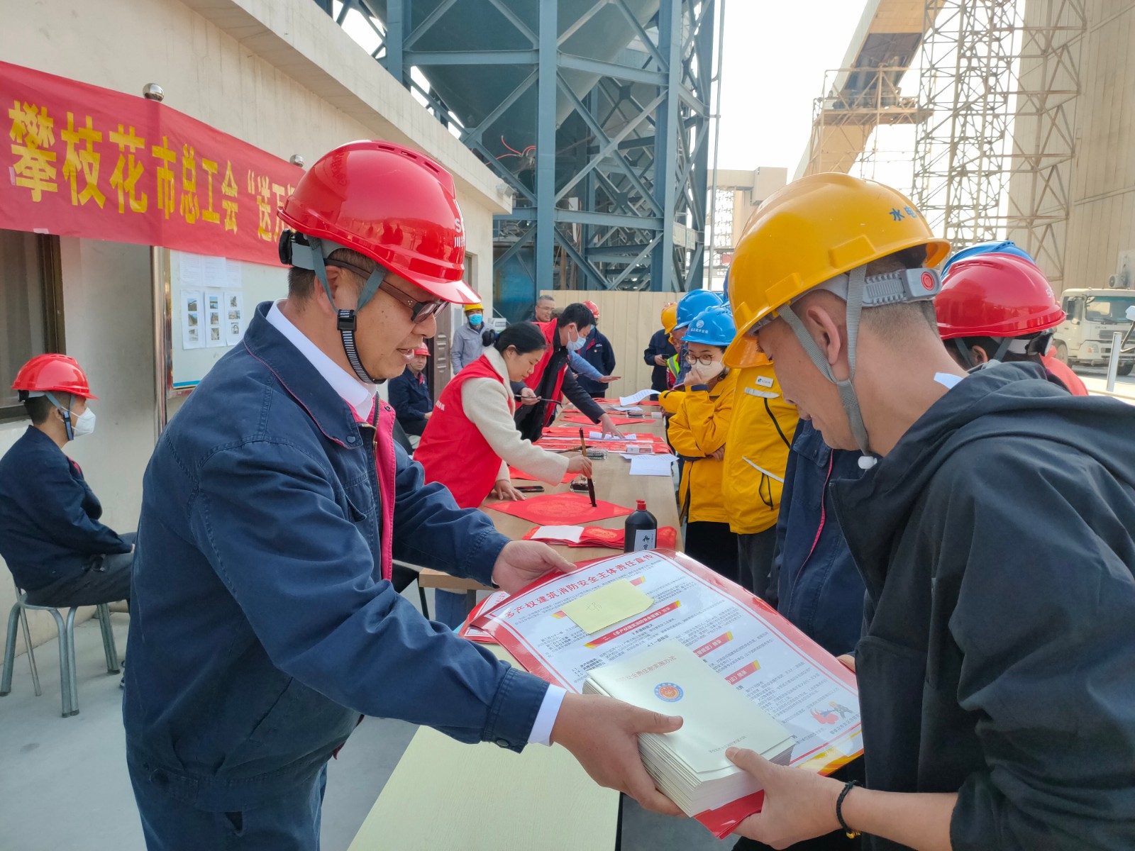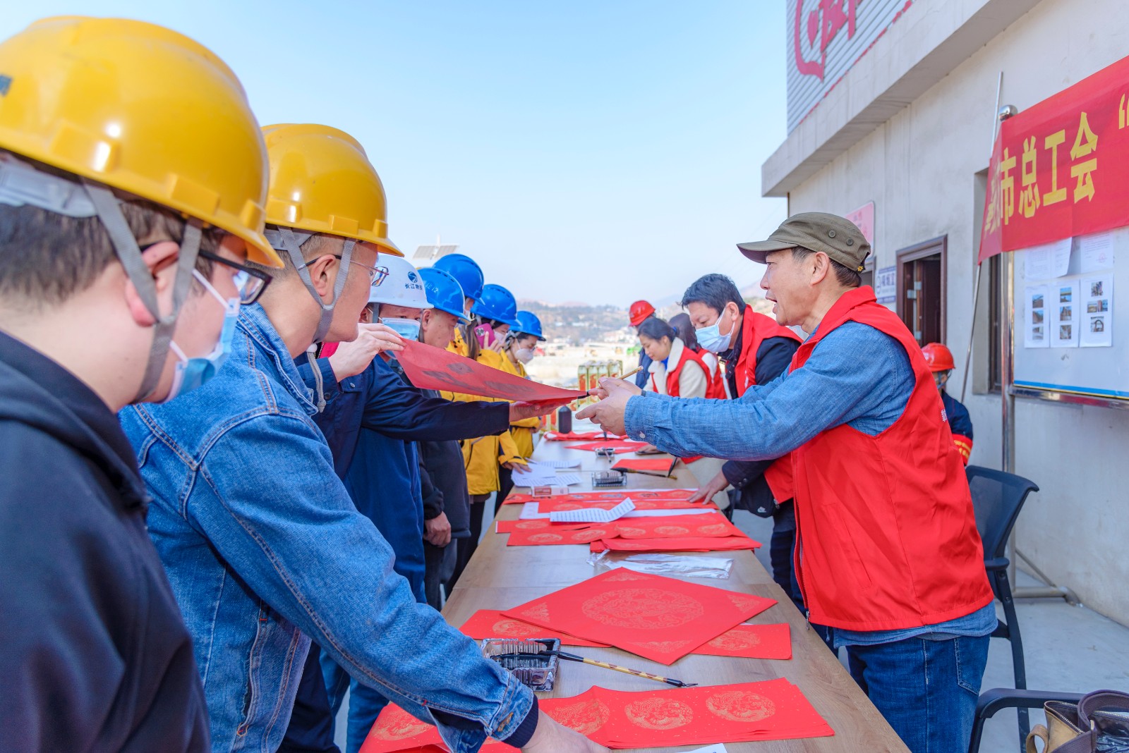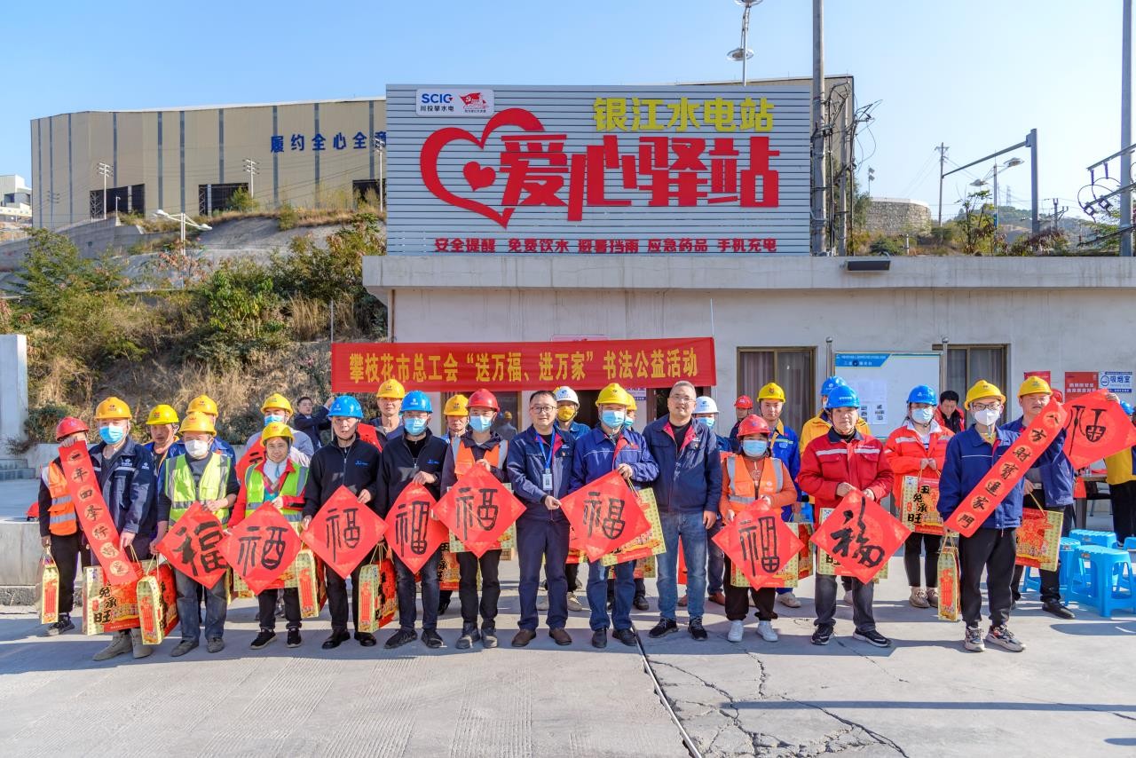 1月17日,公司工會與攀枝花市總工會聯合組織開展了送萬福、送慰問、宣傳消防安全等活動。邀請書法大師為春節期間堅守在工程建設一線職工繪“福”字、寫春聯。在“愛心驛站”活動現場,鋪著紅色春聯紙的桌子呈一字型排開,書法大師們帶著滿滿的誠意與祝福,揮毫潑墨,大家手捧一副副精美的春聯,一個個火紅喜慶的“福”字以及新春大禮包,喜悅之情溢于言表。