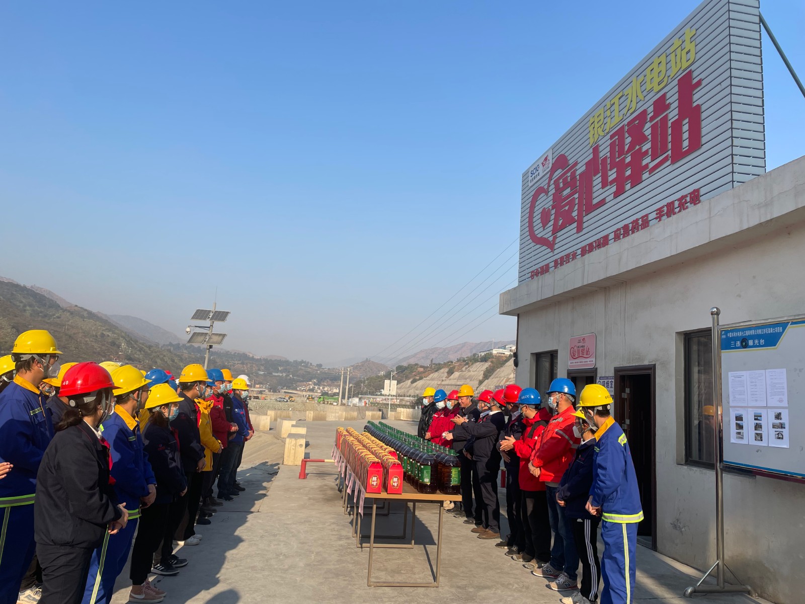 公司黨總支副書記、董事會秘書、工會主席鄧勇代表公司在銀江水電站“愛心驛站”慰問參建單位,向長江設計代表處、貴陽院監理部、水電五局項目部、水電七局項目部、廣東源天項目部等16家參建單位一線職工送上春節慰問和臘肉制品禮盒套裝等慰問物資,向一線建設者致以親切的問候和誠摯的新春祝福,感謝大家對建設銀江水電站的艱辛付出和奉獻,叮囑大家要時刻銘記安全的重要性,做好春節值班值守工作。