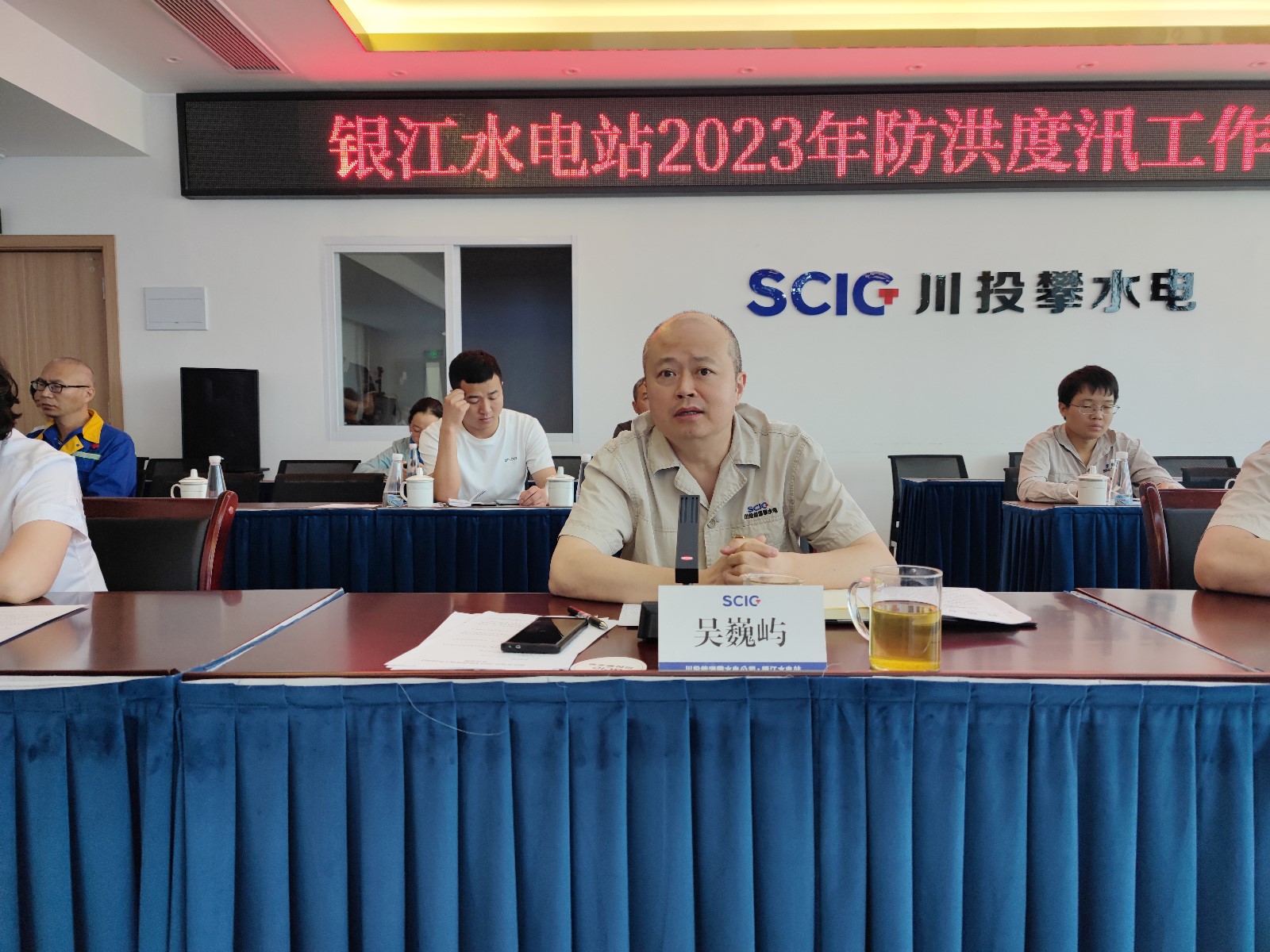 會上,楊銳傳達學習了《四川省能源局關于切實做好2023年能源項目建設汛前準備工作的通知》,公司工程管理部匯報了公司2023年防洪度汛準備工作情況,并對防洪度汛工作作了具體安排,嚴瑞平對相關工作進行了補充匯報。各參建單位逐一匯報了防洪度汛組織機構、防汛值班、度汛形象面貌、地災隱患排查整治、防洪度汛應急演練準備以及防汛物資落實等方面情況。