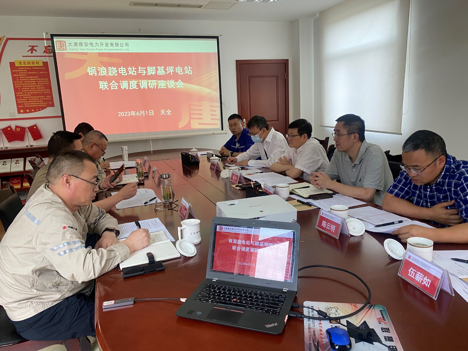 大唐雅安公司黨委副書記、總經理宋坊鈞,黨委委員、副總經理、紀委書記、工會主席王志勇,黨委委員、總工程師郝才偉,各相關部門負責人及鍋浪蹺電廠相關人員,川投能源經營部經理陳元峰、安全環保部經理袁成明、川投電力副總經理陳云明及相關人員參加調研座談。