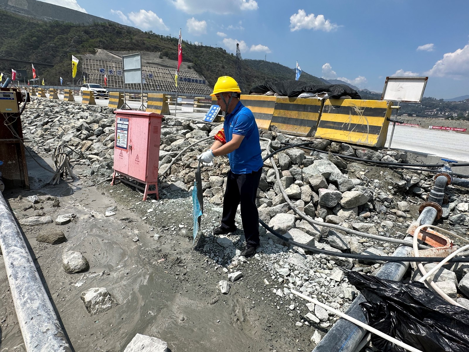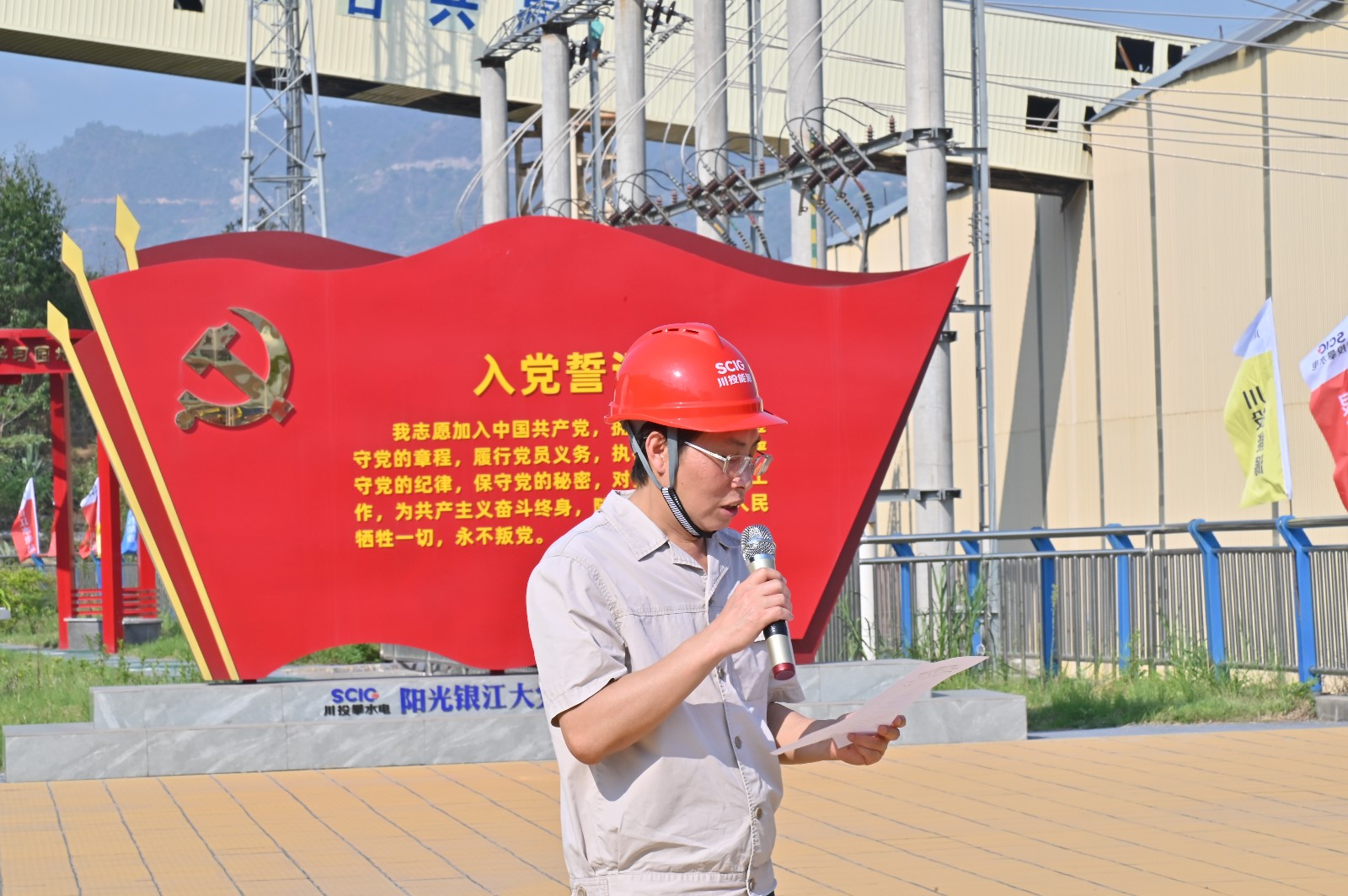 工地現場,在烈日的“考驗”下,川投能源副總經理,攀水電公司黨總支書記、董事長徐孝剛作動員講話。他講到,黨的二十大明確提出:要在全社會弘揚勞動精神、奮斗精神、奉獻精神,培育時代新風新貌。在黨102歲生日之際,今天我們團結在一起,開展主題黨日活動,傳承黨自力更生、艱苦創業的紅色基因,弘揚團結協作、無私奉獻的政治品格,建設綠色環保銀江,共建和諧文明工地;希望大家發揚不怕累、不怕臟、不怕苦的勞動精神,用勤勞的雙手,打造美麗銀江,展現“顏值擔當”。