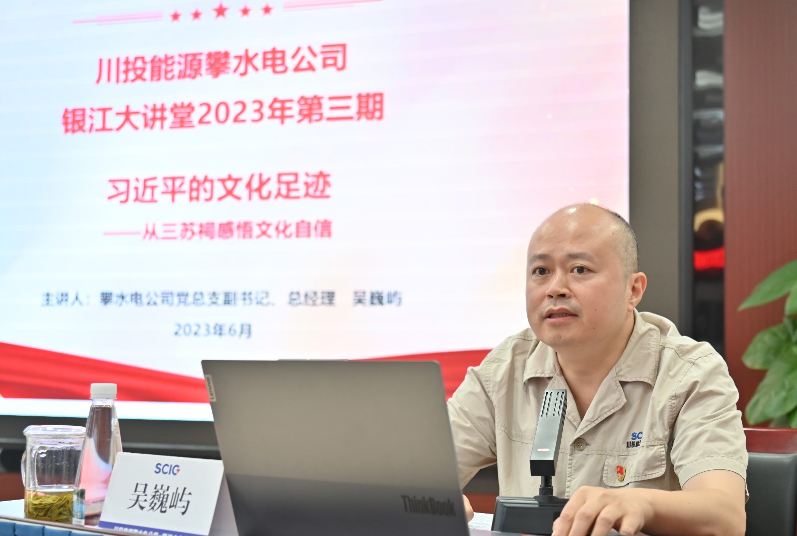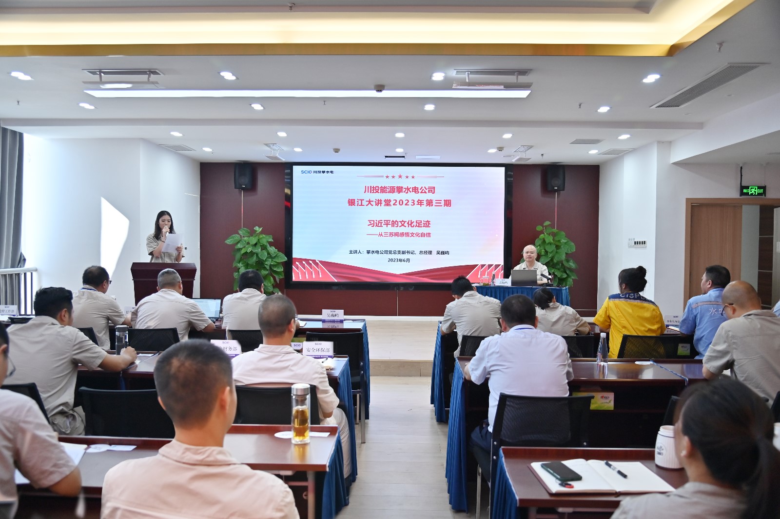 為扎實開展學習貫徹習近平新時代中國特色社會主義思想主題教育,深入學習貫徹黨的二十大精神,進一步加強員工家風教育和廉潔教育,推動主題教育走深走實,6月29日,攀水電公司黨總支副書記、總經理吳巍嶼以《習近平的文化足跡——從三蘇祠感悟文化自信》為題,講授中華優秀傳統文化教育黨課,公司在攀領導、各參建單位主要負責人、公司全體員工及各參建單位黨員代表共50余人參加。