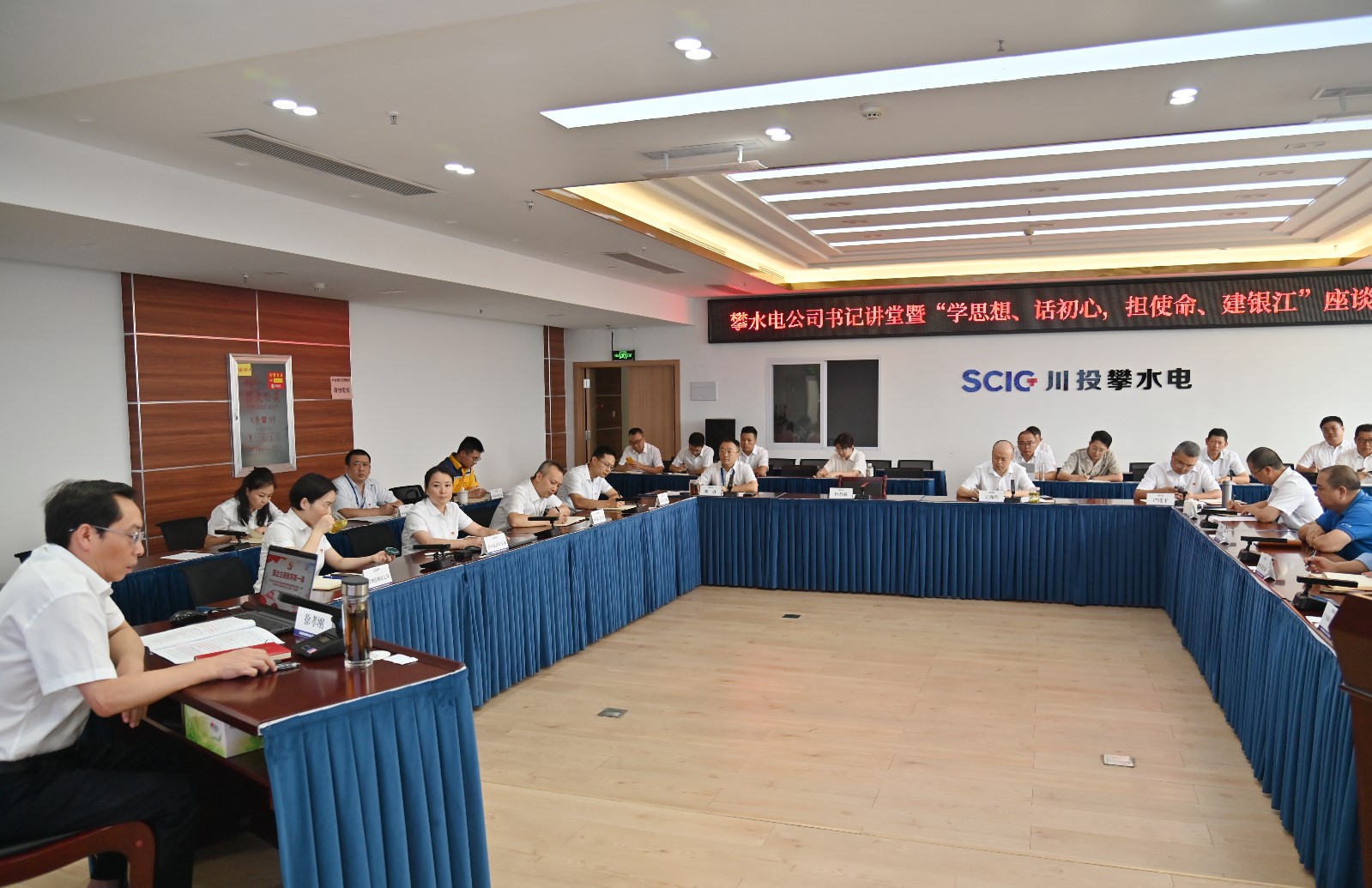 為扎實推進學習貫徹習近平新時代中國特色社會主義思想主題教育走深走實,以思想偉力凝聚起干事創業的強大動力,7月8日,攀水電黨總支組織開展書記講堂暨“學思想、話初心,擔使命、建銀江”座談會,由川投能源副總經理、攀水電黨總支書記、董事長徐孝剛講授專題黨課,公司全體黨員、非黨中干、統戰對象、青年職工,聯建支部書記、黨員代表共計40余人參加。