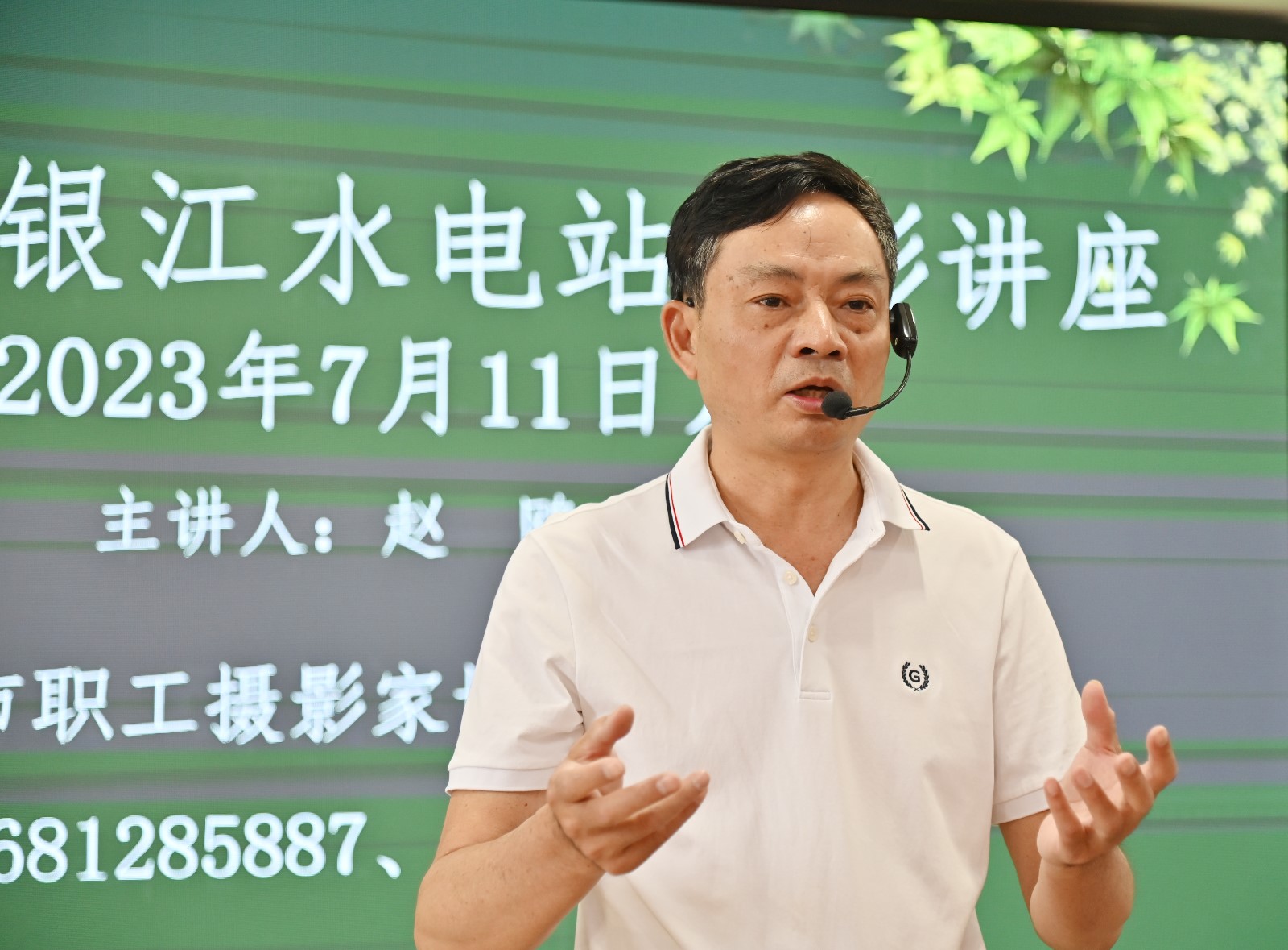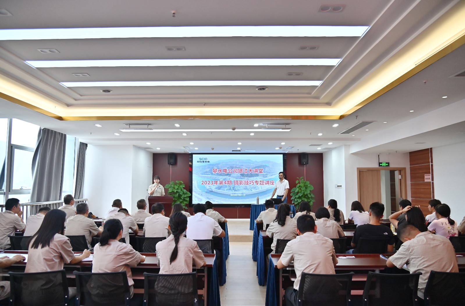 為切實提高公司員工的攝影技能與水平,提升公司新聞宣傳質量,更好的捕捉銀江水電站建設的每個里程碑節點的重要瞬間和建設者的汗水與成績,7月11日,攀水電公司舉辦2023年第四期“銀江大講堂”攝影技巧專題培訓,邀請了攀枝花市職工攝影家協會主席、攀枝花市總工會職工才藝培訓攝影班趙鷗老師主講,公司各部門及各參建單位相關人員共30余人參加。