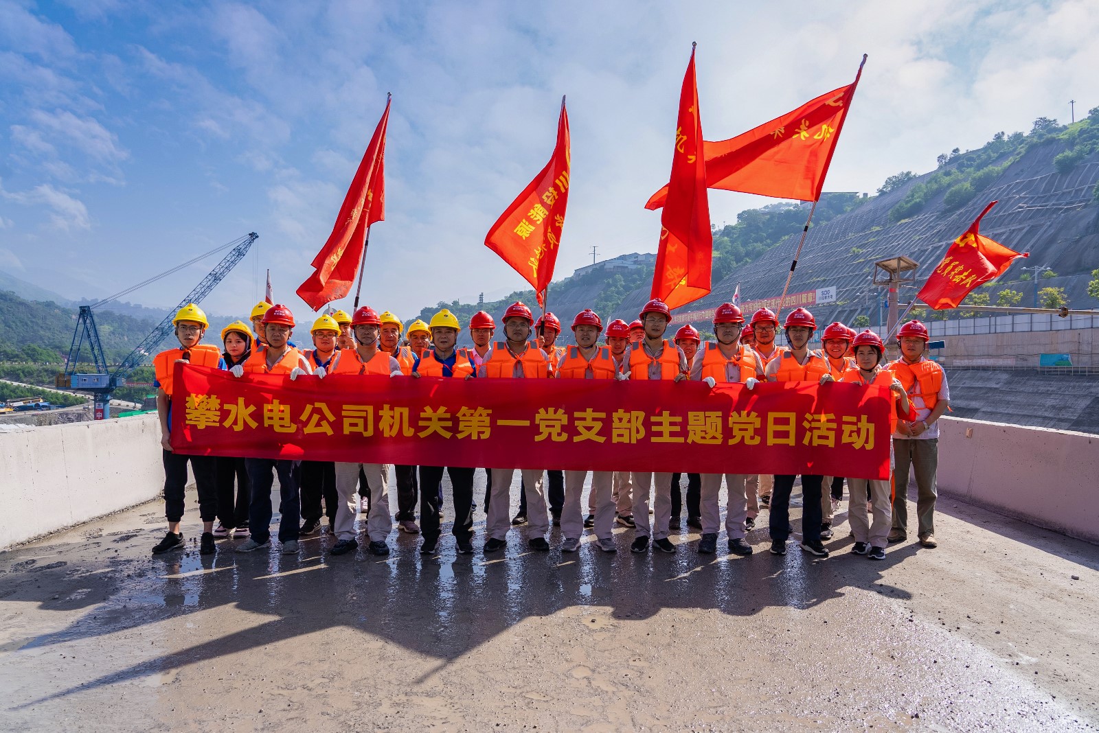 為認真貫徹落實近期中共中央政治局常務委員會研究部署防汛抗洪救災和災后恢復重建工作時,關于“基層黨組織和廣大黨員干部要充分發揮戰斗堡壘作用和先鋒模范作用,在防汛抗洪救災一線挑重擔、當先鋒、打頭陣”的重要指示要求。9月3日,攀水電黨總支在銀江水電站施工現場組織開展9月主題黨日活動,機關第一、第二黨支部、水電五局銀江項目部黨支部黨員、入黨積極分子、職工志愿者共計30余人參加。
