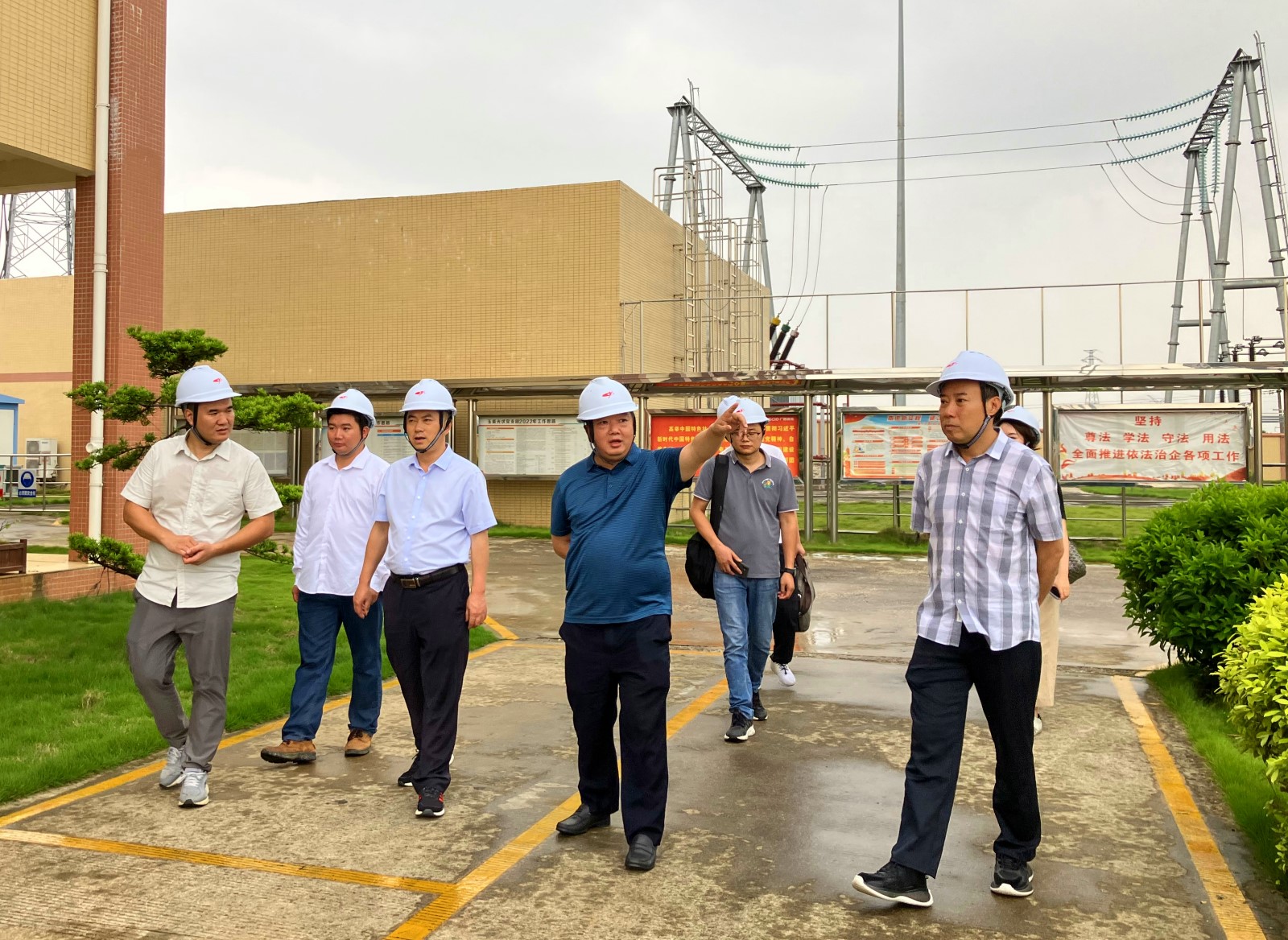 在桂平光伏電站升壓站,王行仁一行聽取了電站的建設過程、設備運行及安全管理的情況匯報,對光伏電站設備的運行狀態、設備缺陷處理情況進行了全面了解。