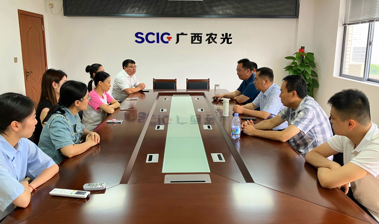 在廣西玉柴農光公司玉林辦公基地,王行仁一行與新入職的員工進行交流,并寄語新員工快速適應新崗位,不怕吃苦,腳踏實地,認真對待每一項工作任務。