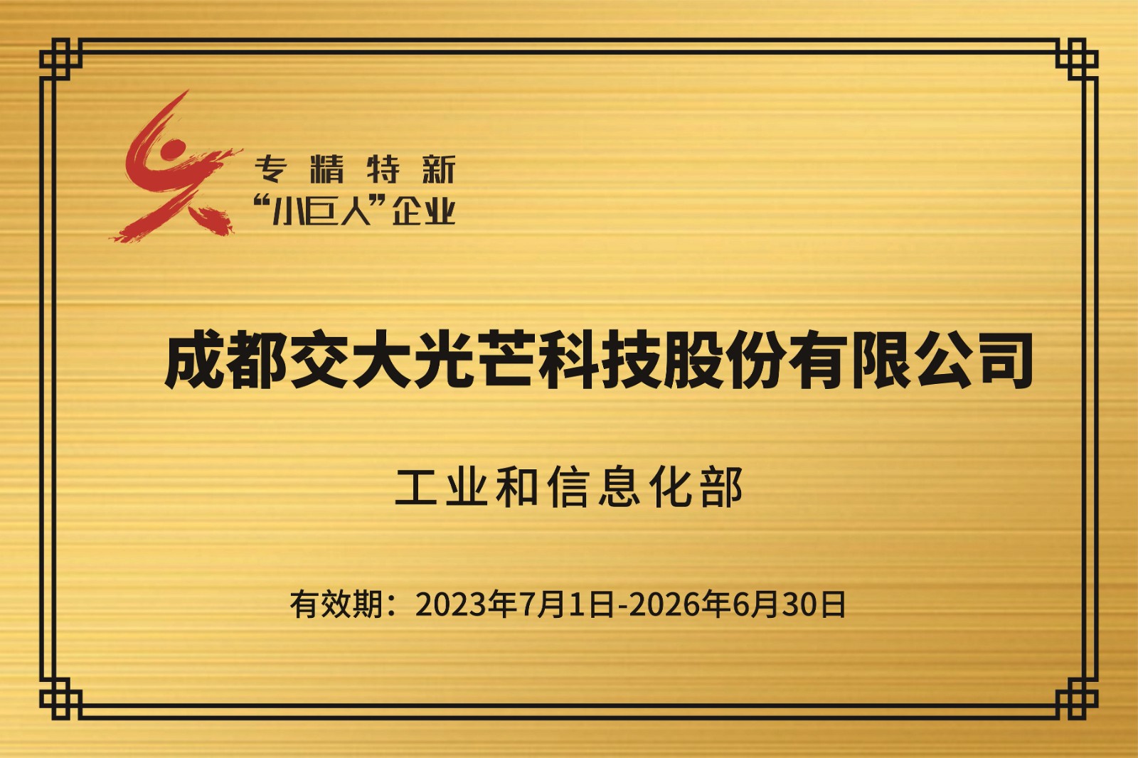 日前,國家工業和信息化部公布《關于第五批專精特新“小巨人”企業和通過復核的第二批專精特新“小巨人”企業名單的通告》,成都交大光芒科技股份有限公司被授予專精特新“小巨人”稱號。