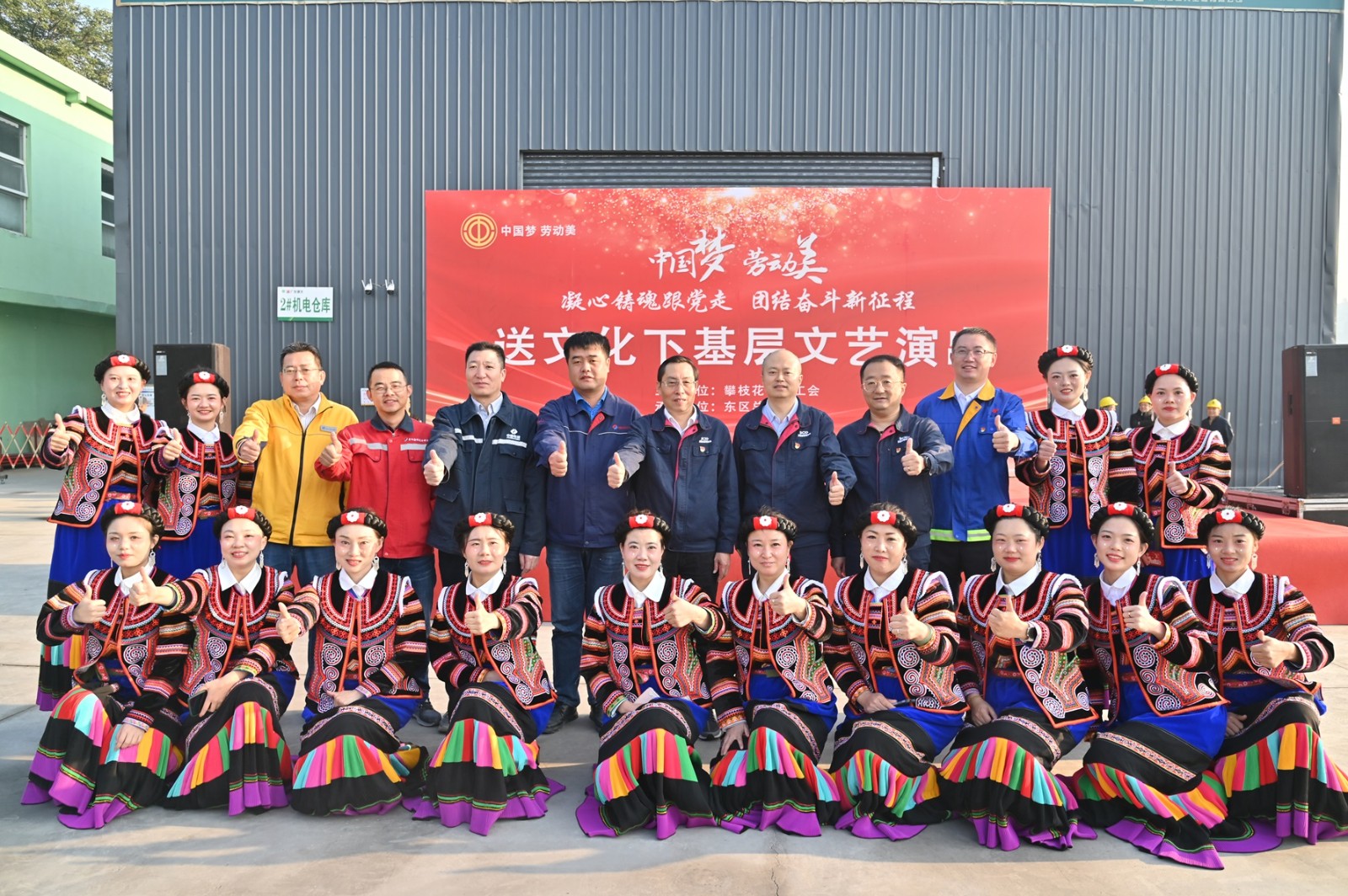 為深入學習貫徹黨的二十大精神、習近平總書記來川視察重要指示精神,11月29日上午,由攀枝花市總工會主辦,東區總工會、攀水電公司承辦的“中國夢·勞動美——凝心鑄魂跟黨走 團結奮斗新征程”2023年“送文化下基層”文藝演出在銀江水電站工地火熱開展。川投能源副總經理,攀水電公司黨總支書記、董事長徐孝剛出席活動,攀枝花市總工會、東區總工會、攀水電公司及參建單位200余人參加。