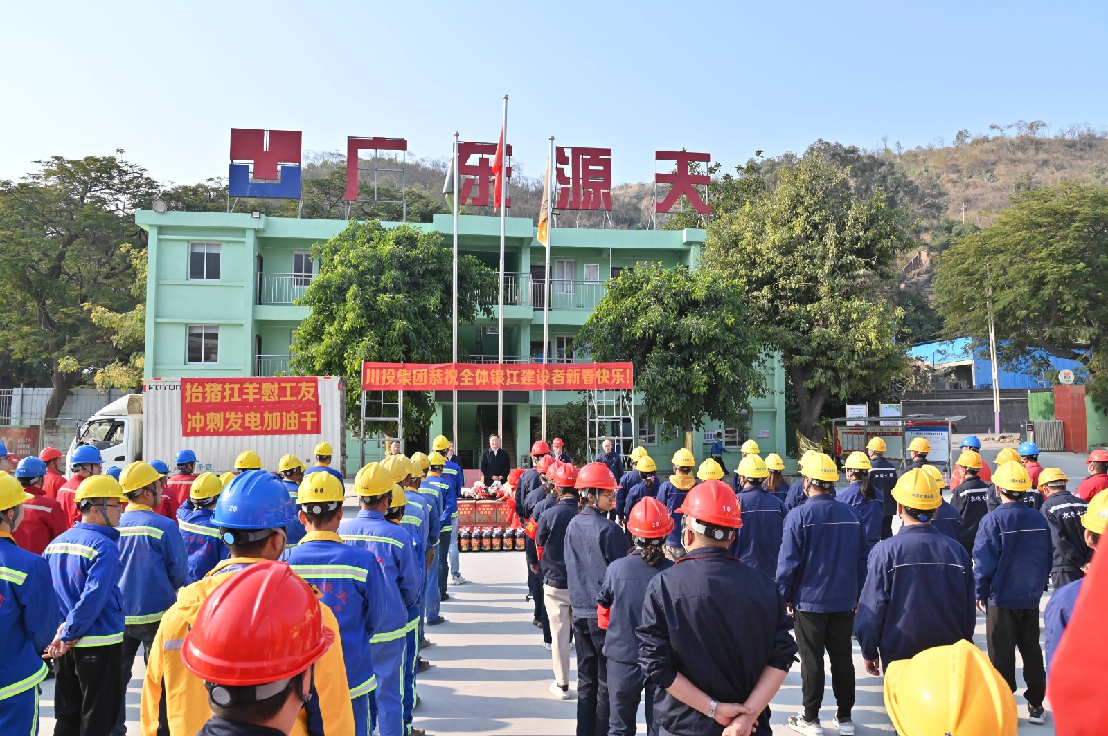 隨后,按照川投集團黨委統一部署,對攀水電公司及銀江水電站參建單位一線員工800余人致以新春祝福,并為大家送上整豬整羊、食用油等慰問物資,鼓勵大家為沖刺蓄水發電目標加油干。