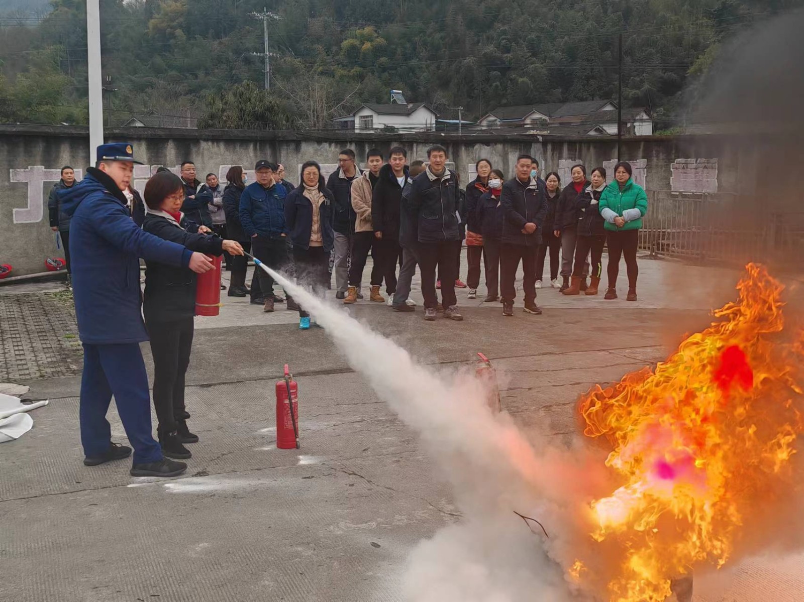 在滅火實操演練環節,教官以日常生活中廚房初起火災為例示范了滅火現場可靈活采用的滅火毯、鍋蓋等應急工具后,公司干部員工輪番上陣親身體驗了傳統的干粉滅火器、新型的水劑滅火器和石棉滅火毯的正確操作流程,以更加直觀的方式迅速掌握滅火技能,達到高效處置常見初起火災的演練目的。