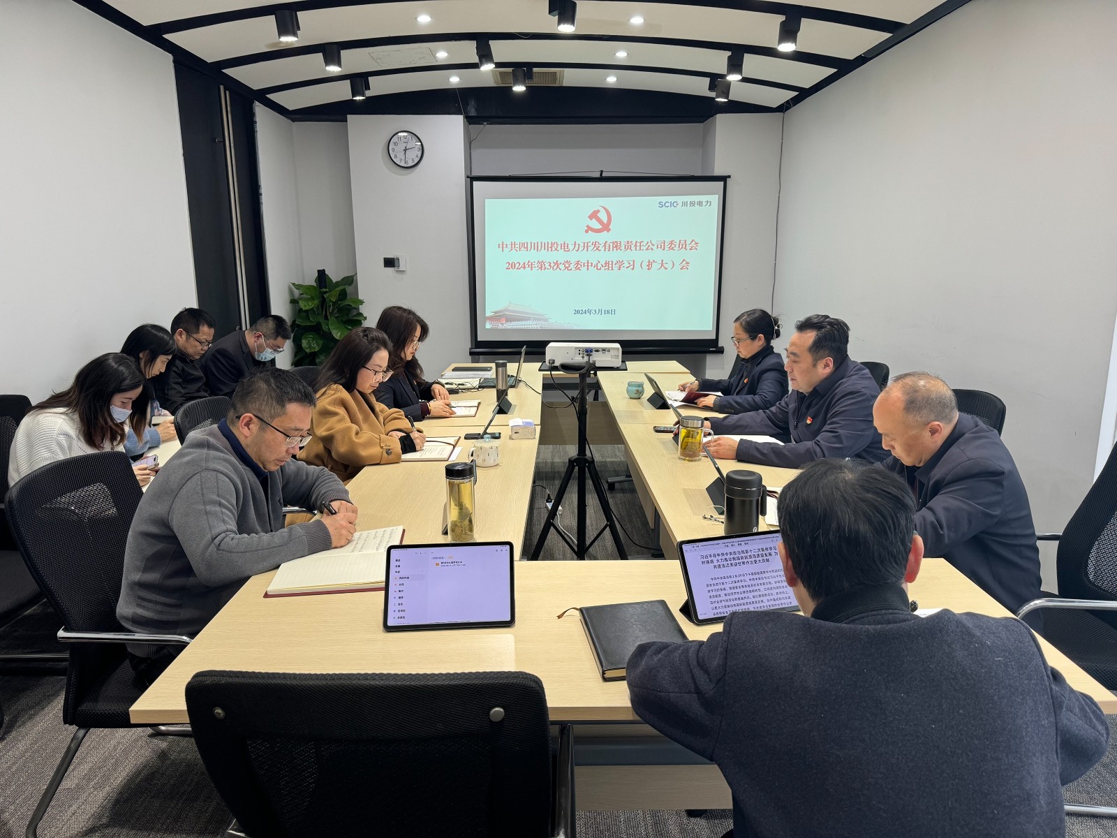 會議學習了習近平在中共中央政治局第十二次集體學習時的重要講話精神、《習近平法治思想學習綱要》《中國共產黨巡視工作條例》、2024年全國兩會精神和川投集團2024年工作會議精神。