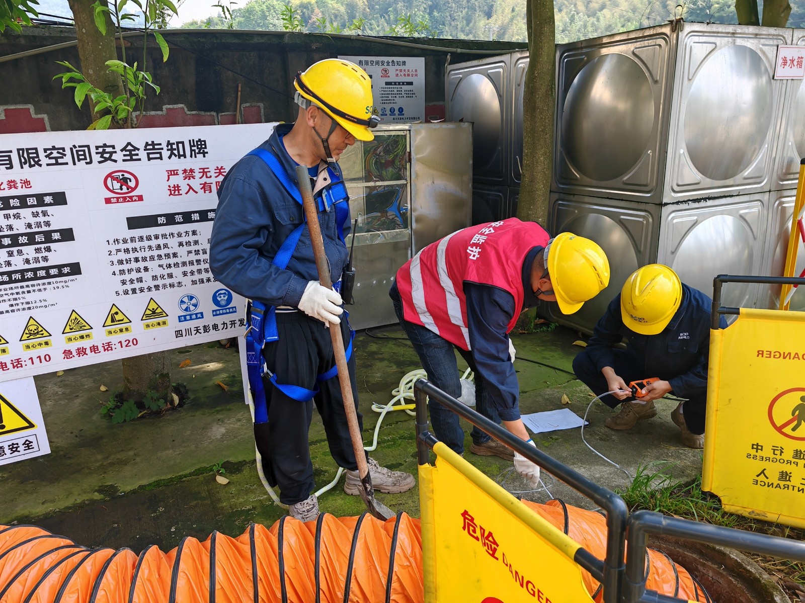為深刻汲取近期各地有限空間安全事故教訓,嚴格落實有限空間作業安全管理“八必須、七不準”要求,提升員工應對有限空間作業突發事件應急處置能力,5月9日,天彭電力組織開展了2024年度有限空間作業安全專項培訓和應急演練。