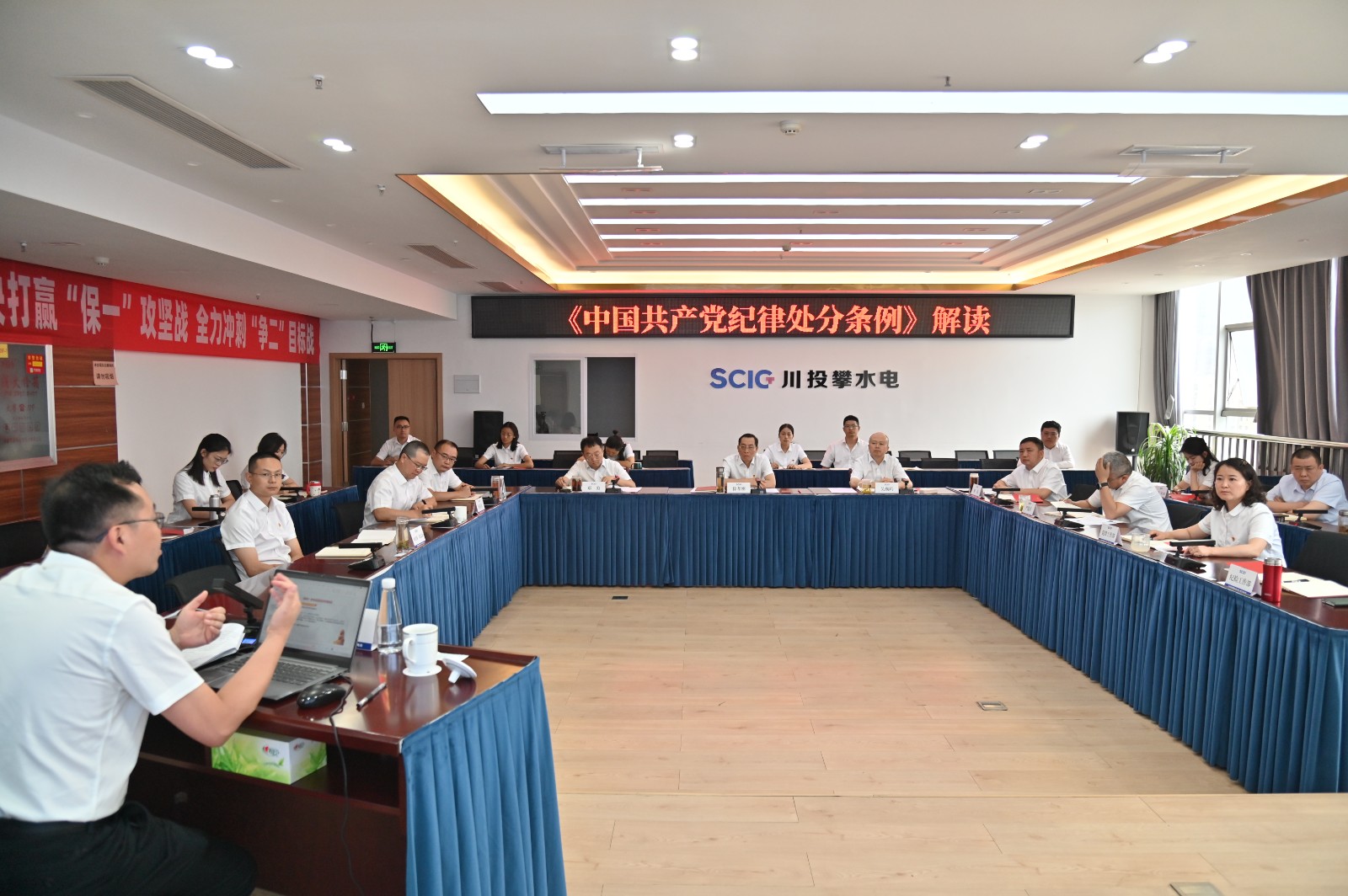 為深入學習貫徹習近平總書記關于加強黨的紀律建設的重要論述和黨紀學習教育的重要講話指示精神,系統學習新修訂的《中國共產黨紀律處分條例》,5月9日至11日,攀水電黨總支舉辦黨紀學習教育讀書班,川投能源副總經理、攀水電黨總支書記、董事長徐孝剛等公司領導班子成員參加。