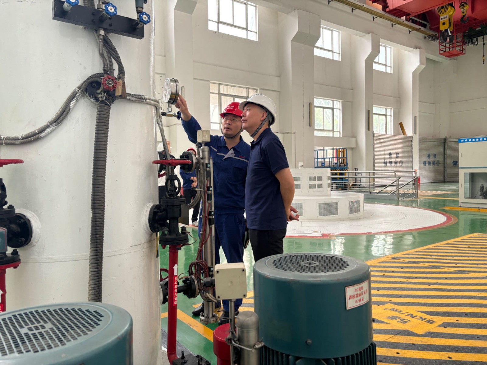 檢查組一行先到生產一線對主廠房設備設施、大壩水庫調度、生態流量下泄、應急物資儲備、中控室生產運行情況進行了重點查看,檢查中,腳基坪電廠廠長趙兵對應急物資儲備情況、防汛應急預案、汛期值班值守、地質災害風險辨識和防范措施等情況進行了匯報,陶世賢對腳基坪電廠在防汛減災各項工作落實情況給予了充分的肯定。