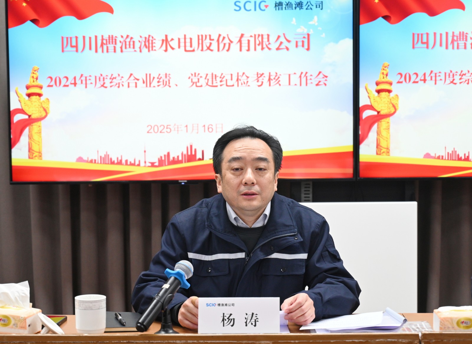 楊濤對槽漁灘公司2024年度綜合考核工作作點評,對槽漁灘公司2024年度取得的工作成績表示肯定。他指出,槽漁灘公司2024年黨建工作有聲有色、電廠發電量再創新高、安全環保態勢平穩、有效化解維穩風險、炭素廠完成技術改造、組建派駐銀江電廠維護部、提質增效初見成效。楊濤要求,公司班子和全體員工要總結經驗成效,2024年公司經營班子帶領全體干部職工迎難而上,奮力拼搏取得了較好的成績,要及時總結好的經驗做法,并強化推廣和應用。要認清短板不足,充分認清目前電力市場和負極材料市場環境更加嚴峻、競爭優勢逐漸喪失、人員結構日趨老化等形勢,增強改革銳氣和信心,進一步全面深化改革。要服從改革大局,公司上下要深化認識、提高站位,堅決服從、支持和參與改革。要狠抓工作重點,堅持黨建引領,推進改革發展,確保槽漁灘公司經濟持續發展、秩序和諧穩定,認真謀劃重點任務,打好改革發展攻堅戰。
