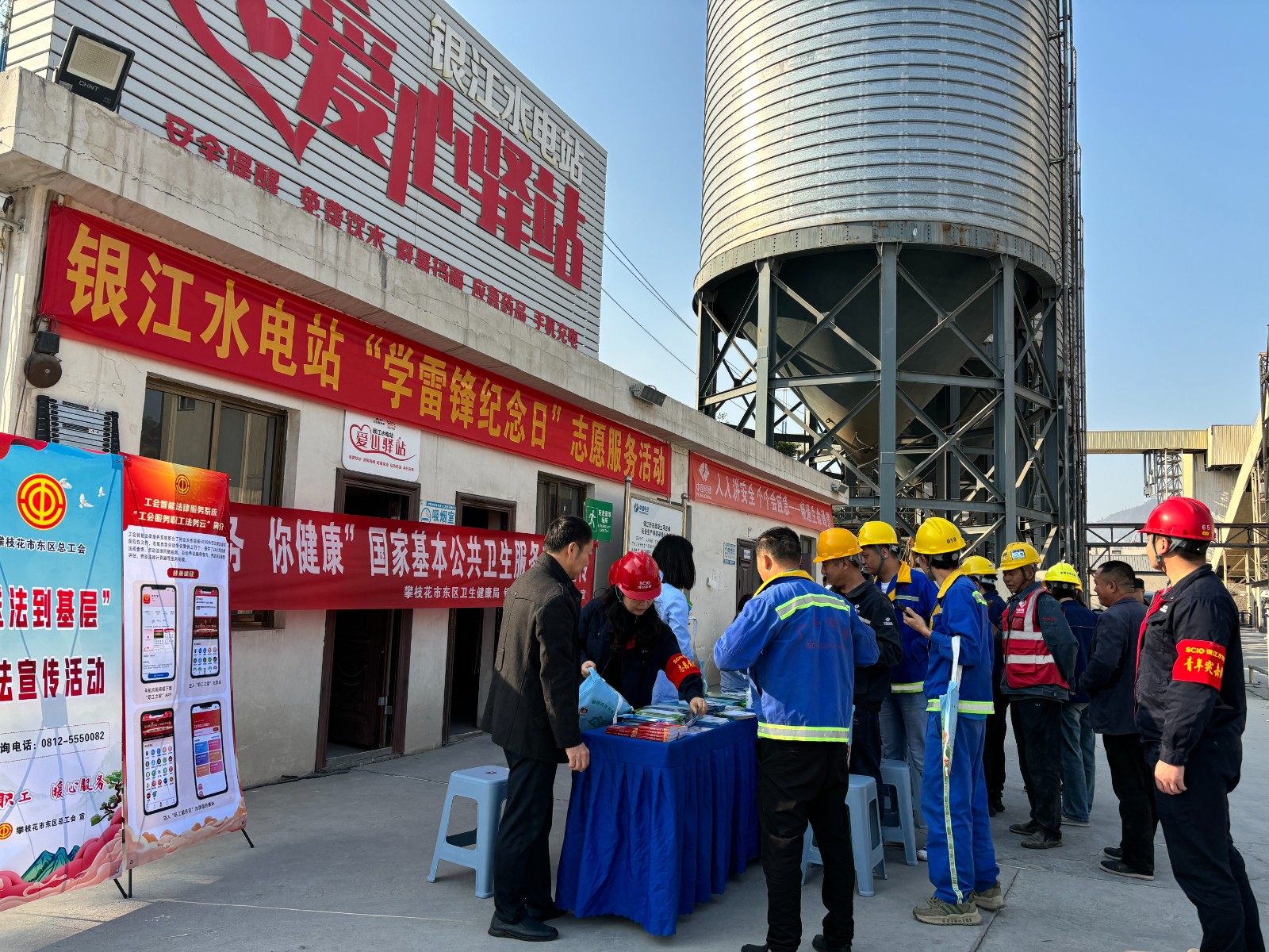 活動現場,銀江工地愛心驛站變身“時尚沙龍”?,攀枝花市美容美發行業協會10名專業理發師現場打造“10分鐘快剪”服務圈,公司工會同步提供消毒濕巾、免洗洗手液,確保大家剪完發,清清爽爽上工去;銀江鎮衛生院創新推出“移動健康管家”服務,由4名醫務人員分別進行血糖、血壓測量,為居住半年以上時間的居民建立健康檔案,簽約家庭醫生服務,為慢性病患者建檔,更有中醫把脈問診開展健康咨詢解答等;安全健康知識“沉浸教學”?,多名志愿者為一線建設者開展中暑、熱射病、春季流感預防等職業健康治知識宣傳,發放健康教育宣傳資料,為職工發放《安全生產法》《四川省安全生產條例》《安全生產與勞動保護職工學習手冊》《職業病防治宣傳手冊》《應急逃生知識宣傳冊》等資料1000余份,將雷鋒精神轉化為常態化服務,?贏得了一線職工的一致好評。?