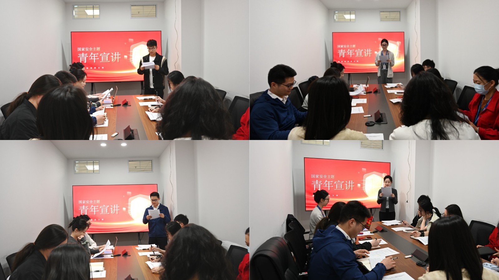 全體團員青年集中學習了習近平總書記關于總體國家安全觀的重要論述、《人民日報》專題文章;圍繞“全民國家安全教育 走深走實十周年”主題,四位青年代表各自結合國家安全機關公布的危害國家安全典型案例進行主題宣講。還集中觀看《云端之戰》《步步驚芯》等國家安全部發布的警示教育視頻,直觀感受數字化轉型中的安全風險,引導團員青年深刻理解總體國家安全觀創新引領成就和十年來全民國家安全教育成果,推動總體國家安全觀入腦入心。