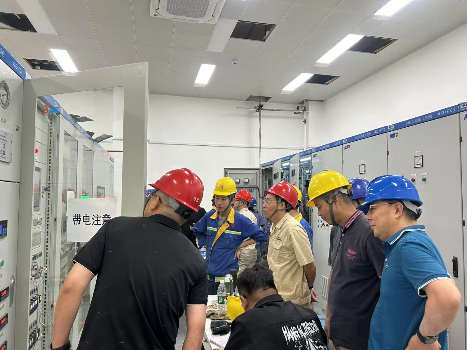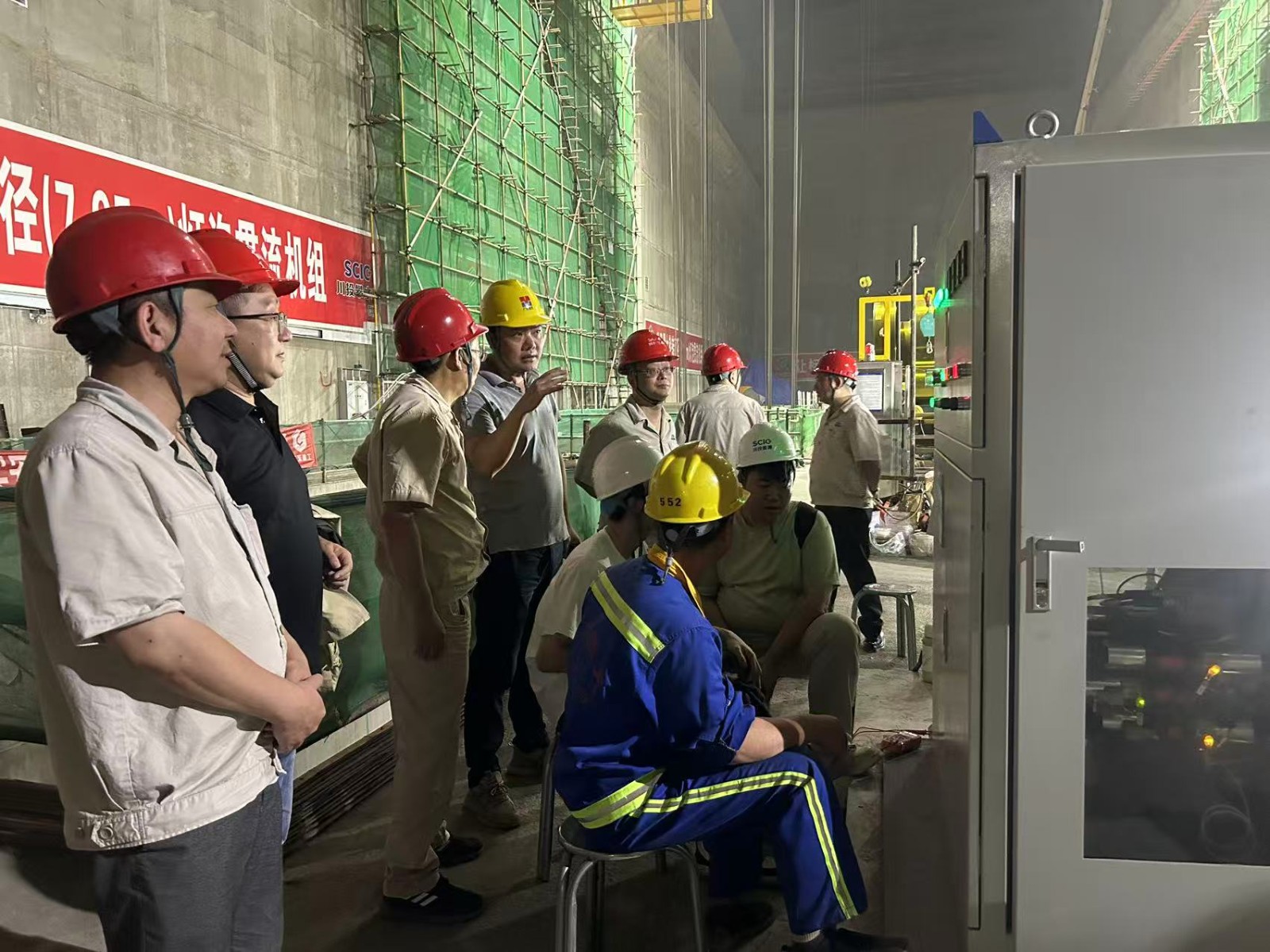 2025年攀枝花汛期比往年來的更早一些,為保障銀江水電站順利度汛和后續機組順利安裝,5月31日3號機組必須完成開機啟動,具備過流條件。為此,進入5月以來,公司帶領各參建單位日夜奮戰在施工現場,實行公司領導承包劃片進行工作督導,施工現場經常深夜還能看見公司領導現場忙碌的身影,經過不懈努力先后完成了3號機組主機、輔機、調速器、機組油、氣和水系統、計算機監控系統、勵磁系統、繼電保護系統等設備的安裝調試工作。5月30日隨著尾水事故閘門充水閥緩慢打開,3號機組流道開始充水,5月31日檢查燈炮體、管形座、流道蓋板、導水機構及各排水閥等各部位正常,3號機組各系統單體、聯調正常,隨著指揮長徐孝剛一聲令下,3號機組手動啟動,并成功升速至100%額定轉速,機組振動、擺度、瓦溫等各項指標優良,機組運行狀態穩定,首次啟動成功。