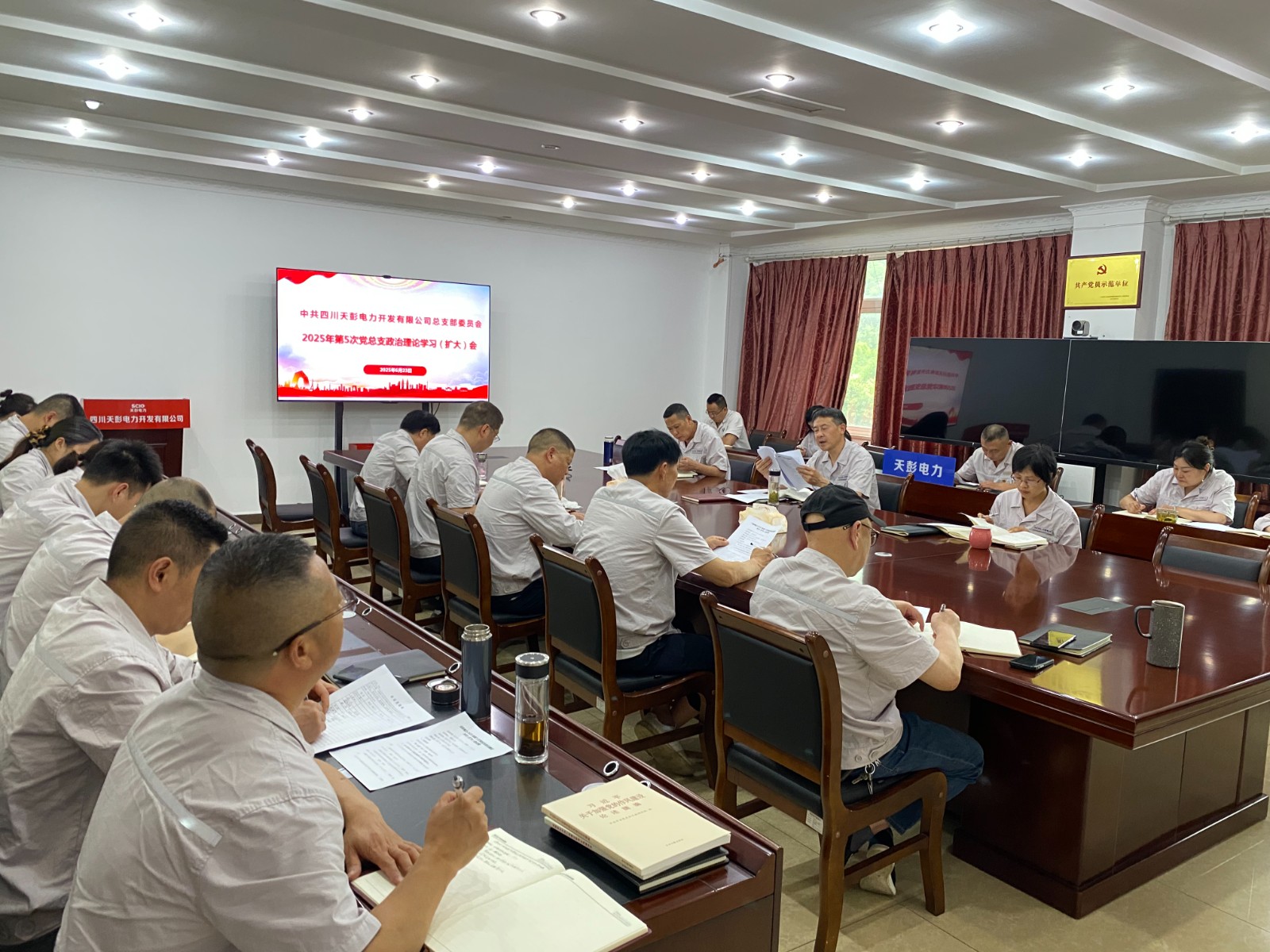 近日,天彭電力黨總支召開2025年第5次政治理論學習(擴大)會議,由公司黨總支書記、執行董事、總經理劉紅兵主持,公司領導班子、黨員及關鍵崗位人員參加學習。