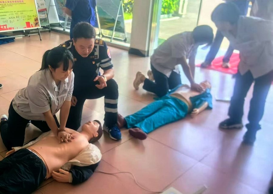 培訓現場,專業講師憑借豐富的理論知識和實踐經驗,向員工們詳細闡述了心臟驟停的危害、急救“黃金四分鐘”的重要性以及AED設備在緊急救援中的關鍵作用。同時,還結合實際案例,生動地展示了在突發情況下如何快速判斷患者狀態、正確撥打急救電話等。