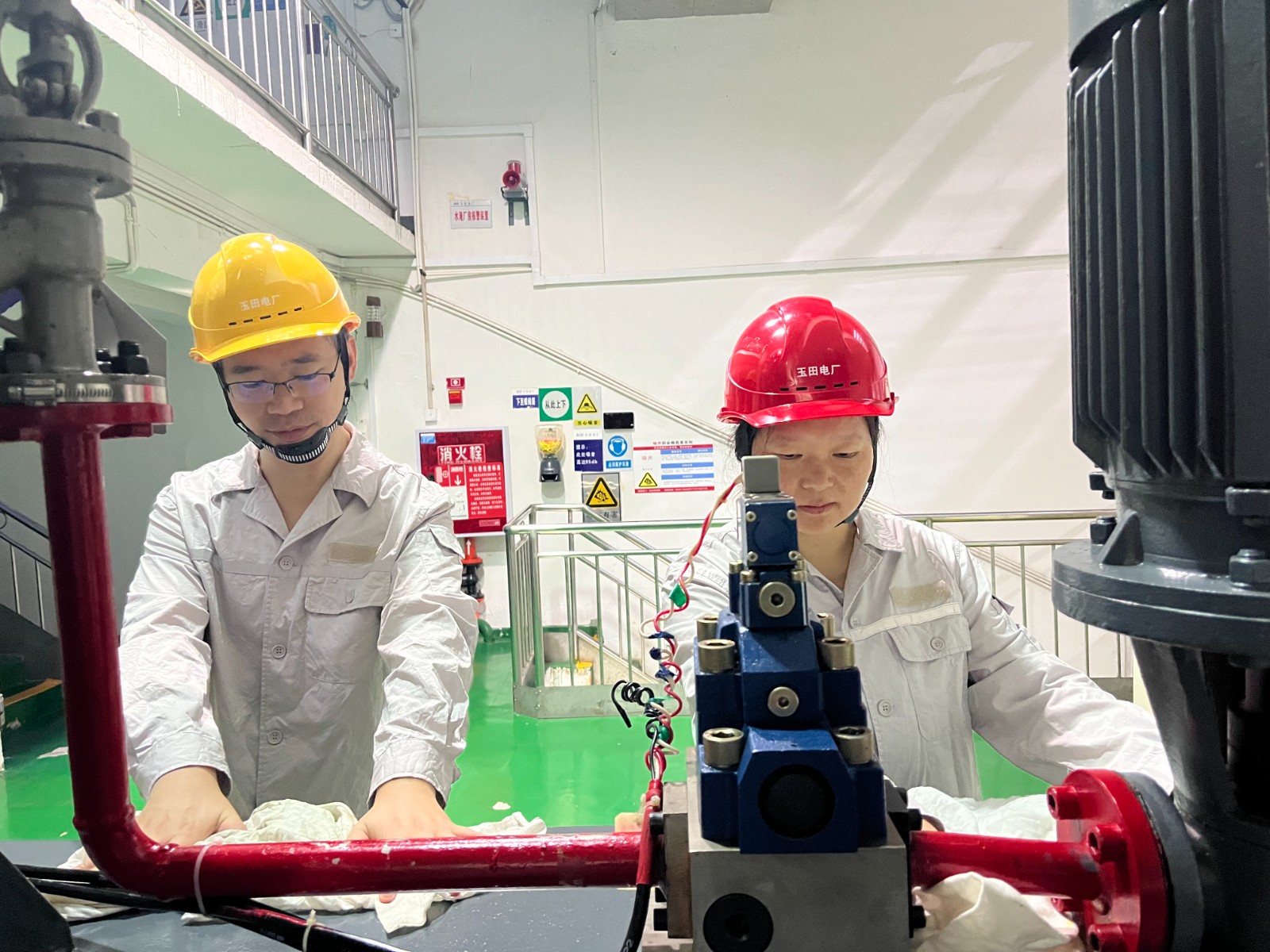 演練前,電廠組織全員學習了《玉田電廠環境污染事故應急演練方案》,明確職責分工、處置流程和注意事項。演練于9時00分正式開始,此次模擬玉田電廠1#機組調速器油壓裝置安全閥動作,造成透平油大量泄漏。現場值班人員收到監控報警:1#機組調速器油壓裝置發生事故低油壓,造成機組事故停機,經現場人員巡視檢查,發現1#機組調速器油壓裝置安全閥動作,造成油污噴出。總指揮接到報告后,立即啟動《玉田電廠環境污染事故應急預案》,應急小組到達現場后,布置警戒區域,運行值班人員做好非停事故處置工作,并向省調匯報。維護人員搭建圍堰,鋪設吸油氈,回收泄漏油品。搶險組檢查集水井,使用吸油墊清除殘油,確保無外排。各小組協同作戰,演練于9時55分圓滿結束。