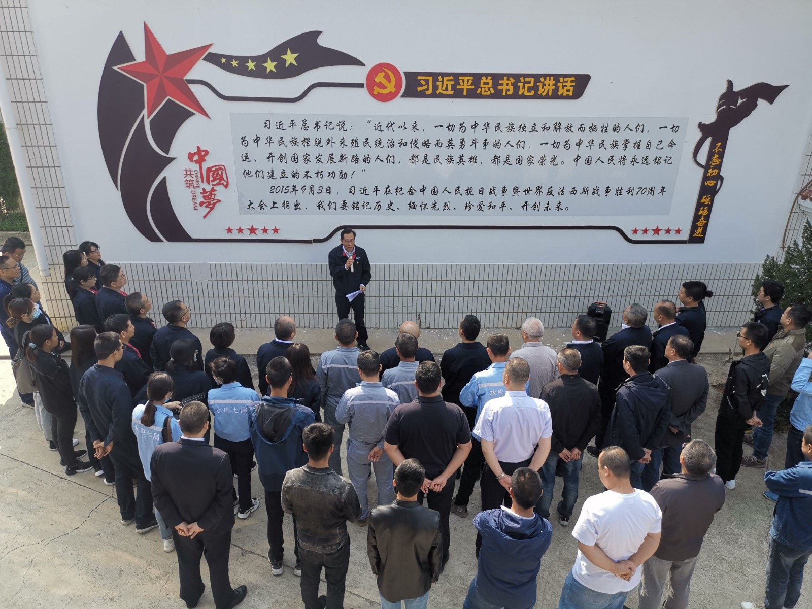 蒼松翠柏掩映下革命烈士紀念碑巍然聳立,伴隨著鏗鏘激昂的《義勇軍進行曲》,全體人員齊聲高唱中華人民共和國國歌。國歌唱畢,全場肅立,向革命英烈默哀致敬。之后,公司黨總支副書記、總經理蔡承德帶領全體黨員重溫了入黨誓詞。公司黨總支書記、董事長徐孝剛代表全體人員向革命英烈敬獻花籃,并駐足凝視、仔細整理花籃緞帶。敬獻花籃儀式結束后,全體人員對烈士紀念碑和烈士墓進行了祭掃,徐孝剛以《為了共同的事業》為題,背靠習近平總書記紀念抗日戰爭暨世界反法西斯戰爭勝利70周年大會講話照壁,講授了一堂生動的黨史學習微黨課。