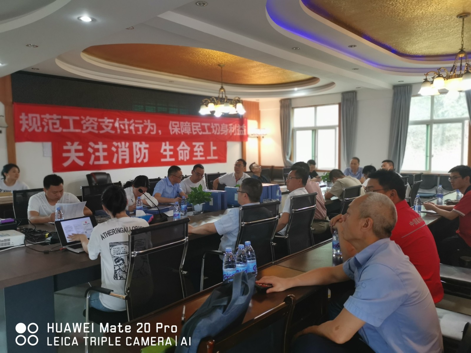 會議首先由攀水電公司計劃合同部經理張興文匯報銀江水電站工程基本情況,葛洲壩路橋項目部副經理周長渝匯報銀江水電站右岸壩頂以上邊坡開挖支護工程基本情況,重點介紹了本項目農民工實名制、工資支付方式、周期及支付總額等,并向檢查組展示了相關憑證材料。核查組成員在資料核查過程中,就葛洲壩路橋項目部提供的農民工工資支付相關資料提出詢問,張興文、周長渝等人逐一進行了解答。