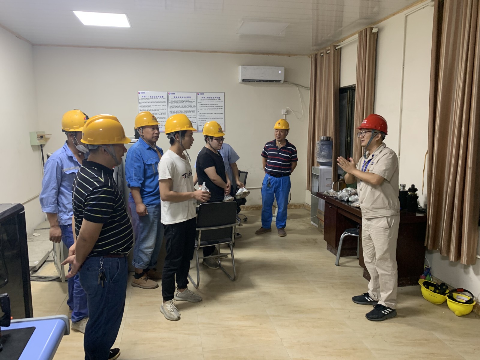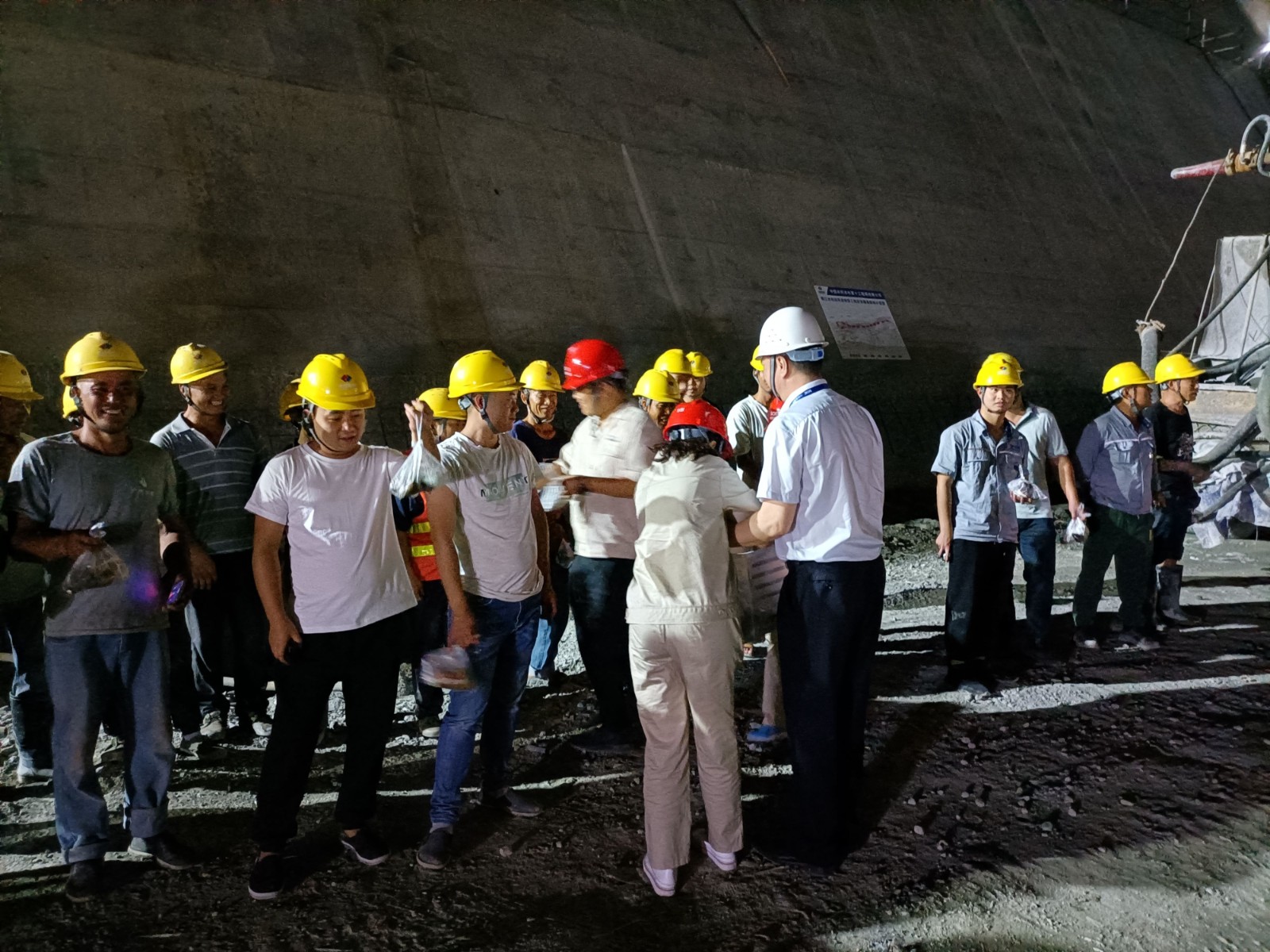 6月13日端午節前夕深夜,公司值班領導、黨總支委員、董事會秘書、工會主席鄧勇,總經理助理唐伽帶領值班人員,對銀江水電站工地現場防洪度汛值班點位及施工現場進行了檢查;公司志愿者服務隊共計10余人對節日期間堅守在銀江水電站工地夜間施工的一線人員進行了慰問。