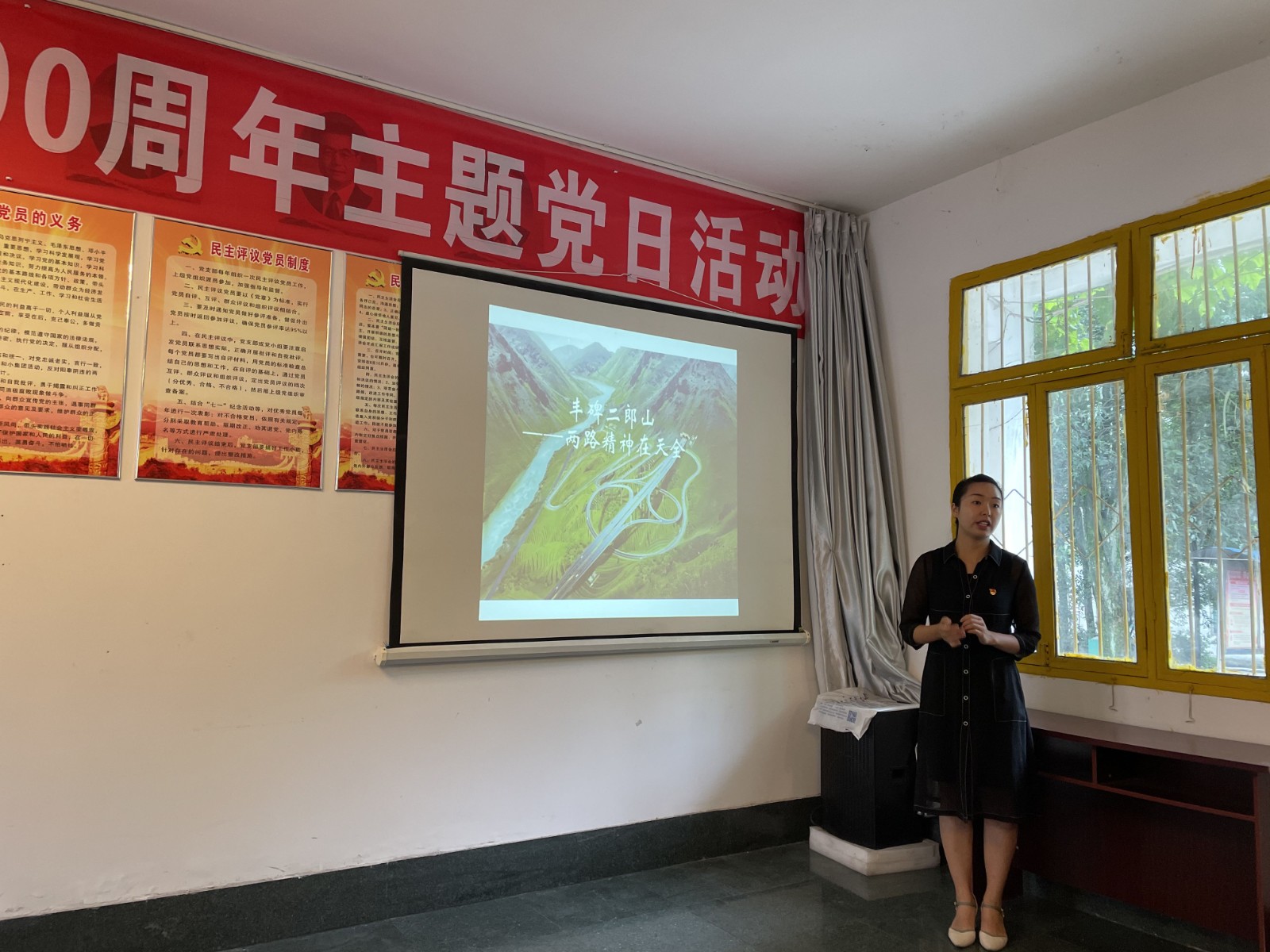 本次主題黨日活動──黨史學習教育分為三個主要內容開展,一是天全縣黨校副校長但婭莉進行《中國共產黨的百年光輝歷程與啟示》專題教學;二是天全縣黨校趙毅佳老師講授《豐碑二郎山—兩路精神在天全》微黨課;三是天全縣黨校校長任生武進行《學黨史、知黨情、跟黨走》專題教學。